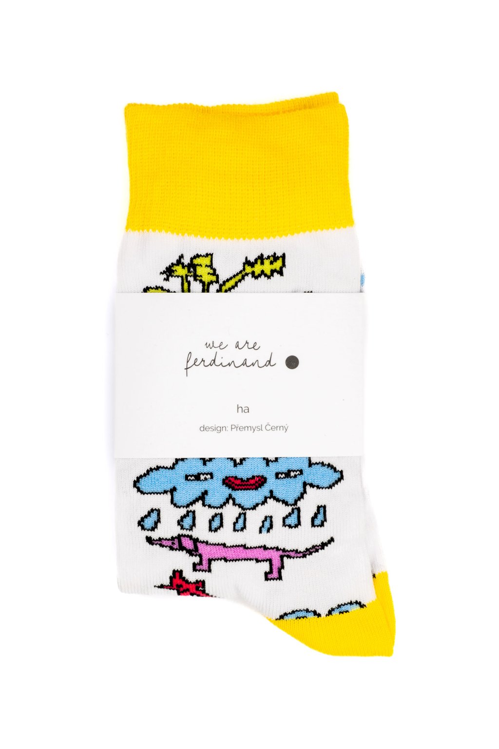 Ponožky od Fusakle navrhnuté dizajnérom Přemyslom Černým sú skutočnou dávkou zábavy do každého dňa. Či už vstanete s pravou alebo ľavou nohou, s ponožkami Haha sa vždy rozžiari váš deň.
