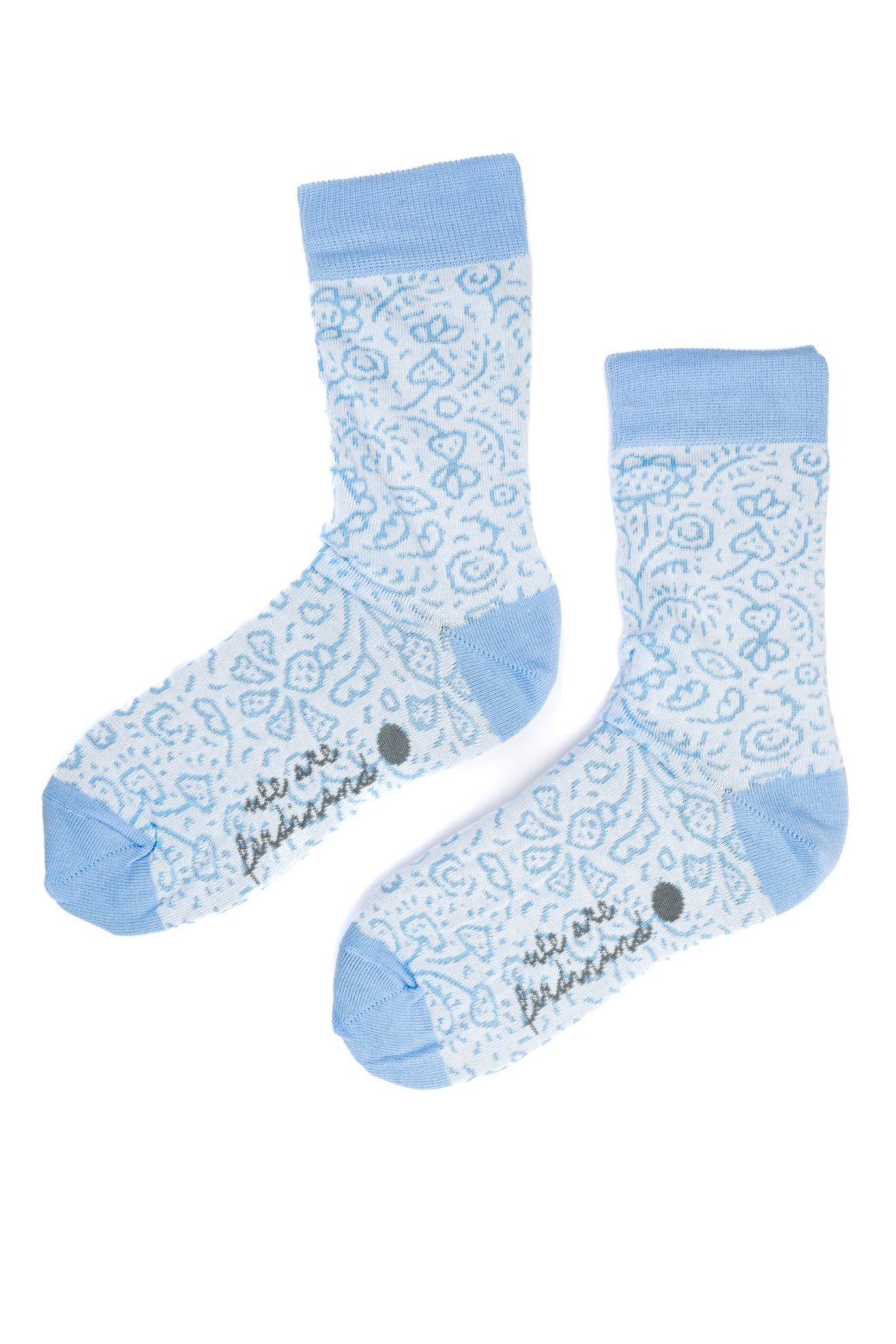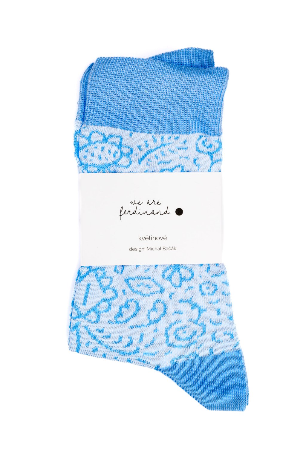 Ponožky od značky Ferdinand, ktoré sú vytvorené v spolupráci s dizajnérom Michalom Bočákom. Tieto úchvatné ponožky vás očaria svojím kvetinovým motívom a modrou farbou.
