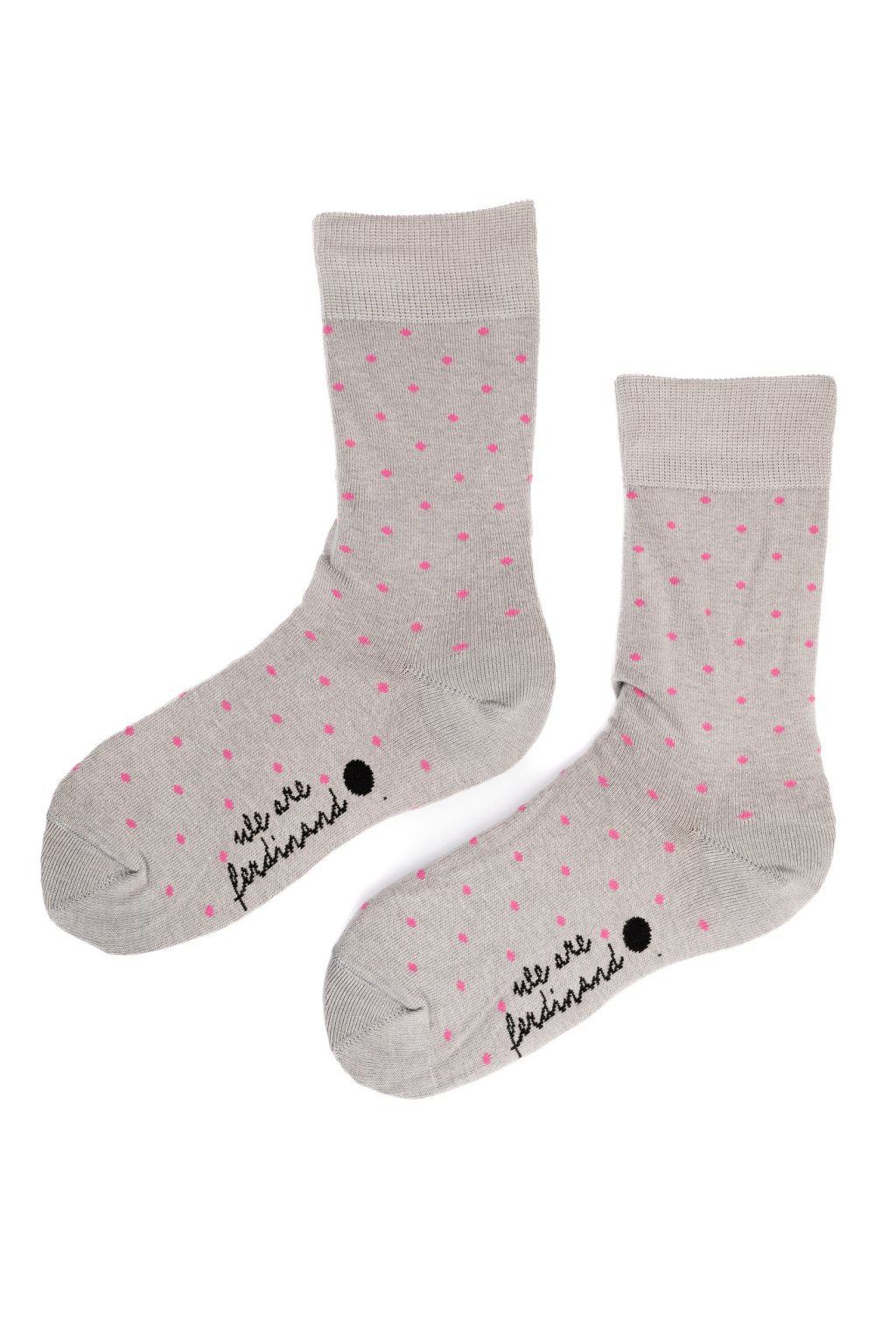 Sivá farba symbolizuje sofistikovanosť a neutrálnosť, zatiaľ čo ružové bodky dodávajú ponožkám živost a hravosť. Táto kombinácia farieb vytvára vizuálnu zaujímavosť a priťahuje pozornosť. Ponožky s ružovými bodkami sú vyrobené z kvalitných materiálov, ktoré zaisťujú pohodlie a odolnosť. Nielenže vám dodajú pocit mäkkosti a pohodlia pri každom kroku, ale tiež sa ľahko kombinujú s rôznymi oblečeniami.