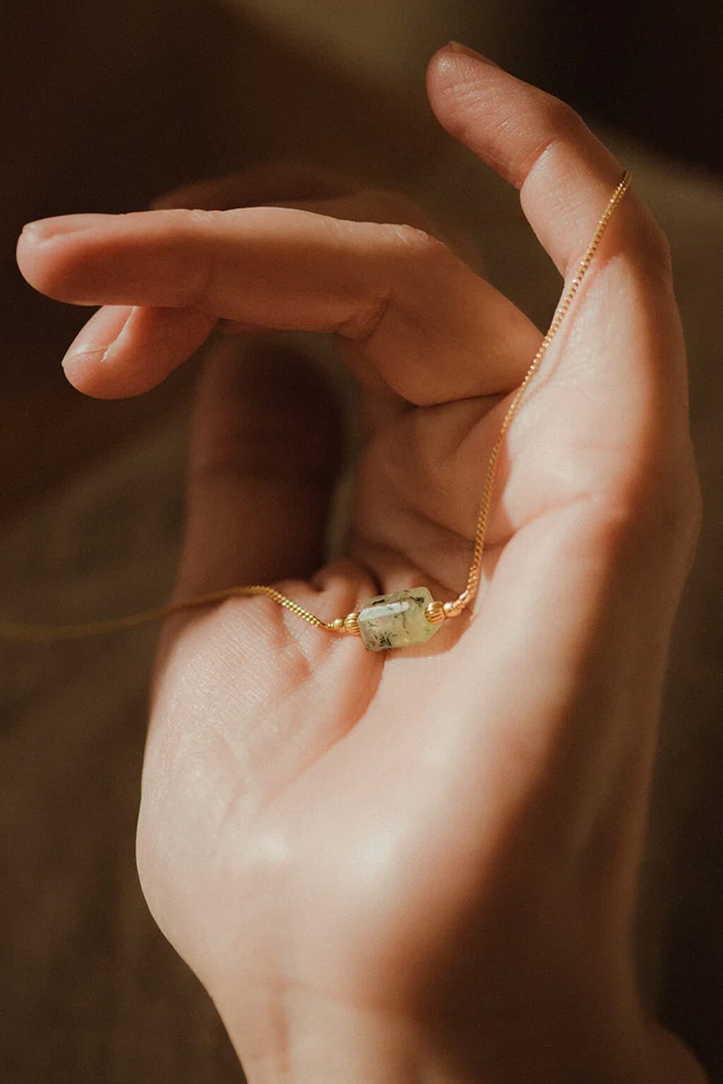 Žensky nežný retiazka s prehnitom vnesie pokoj a harmóniu do každého vášho dňa. Doprajte si výnimočný šperk od značky Bohovibes.