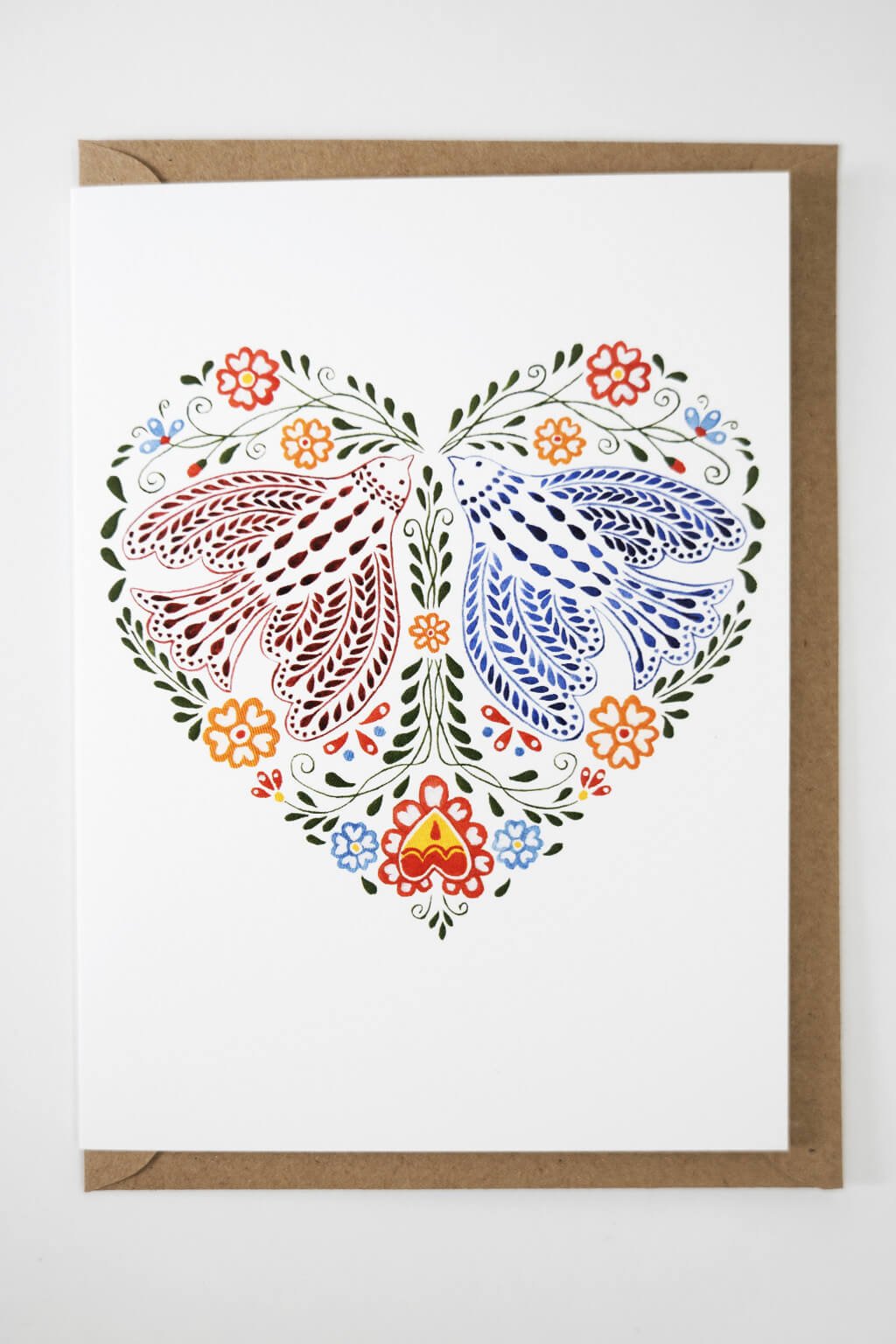 Autorské blahoželanie s motívom hrdličiek od značky Vyšiju.