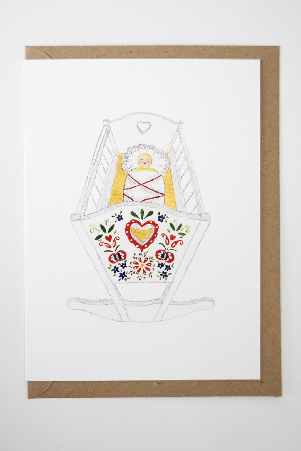 Originálne blahoželanie s motívom detskej kolísky od značky Vyšiju.