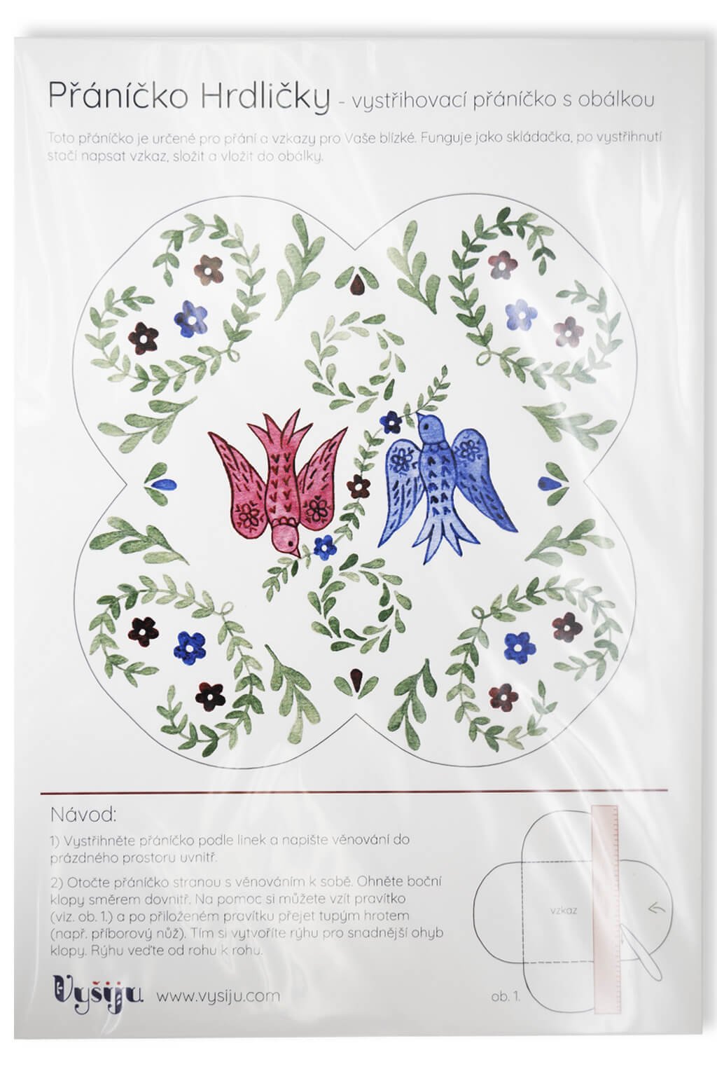 Balenie obsahuje A4 s prianím, návodom na vystrihnutie a zloženie. Súčasťou je obálka v prírodnej farbe.