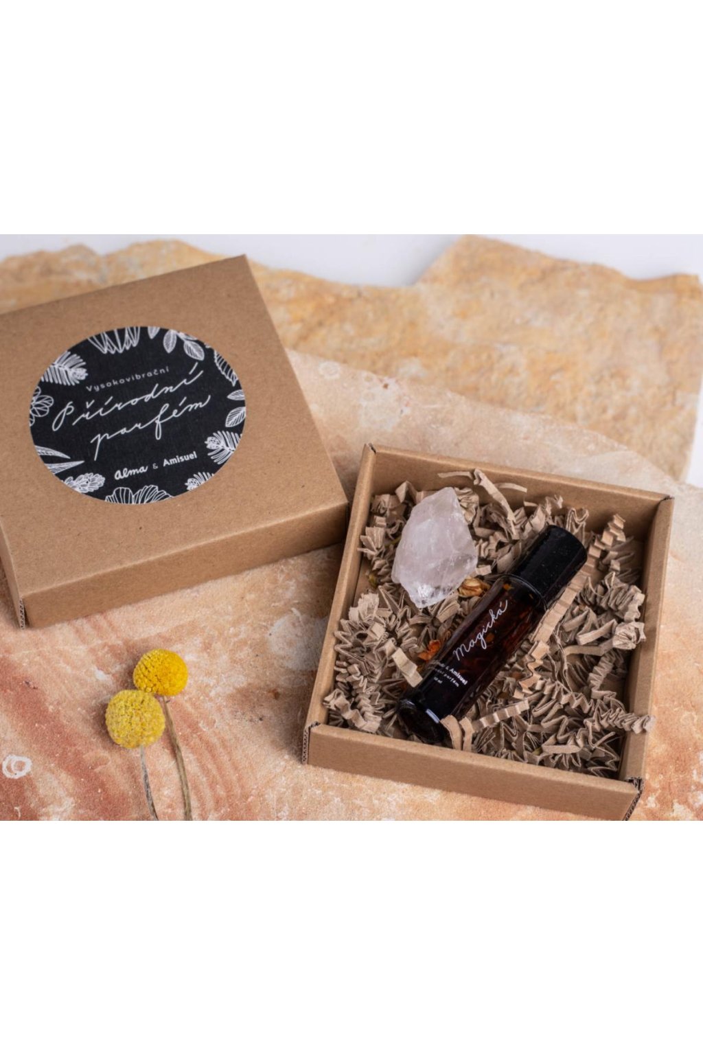Parfum je energeticky ošetrený a nabíjaný kryštalickou mriežkou kryštálov: Rodochrozit, ktorý posilňuje kúzlo sebalásky, dodáva energiu, upokojuje telo a emócie. Mesačný kameň, ženský kameň bohyne posilňujúci šarm a ženskú esenciu. Striebro, esencia lunárneho cyklu a svetla. Túto silnú trojicu dopĺňa krištáľová guľôčka v roll-one. Dovoľ si žiariť. Dovoľ sa otvoriť svojej magickej žene a vysokým vibráciám svetla a lásky.