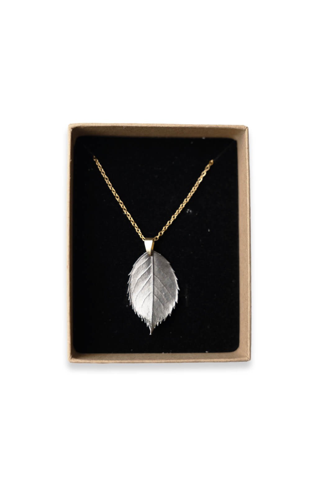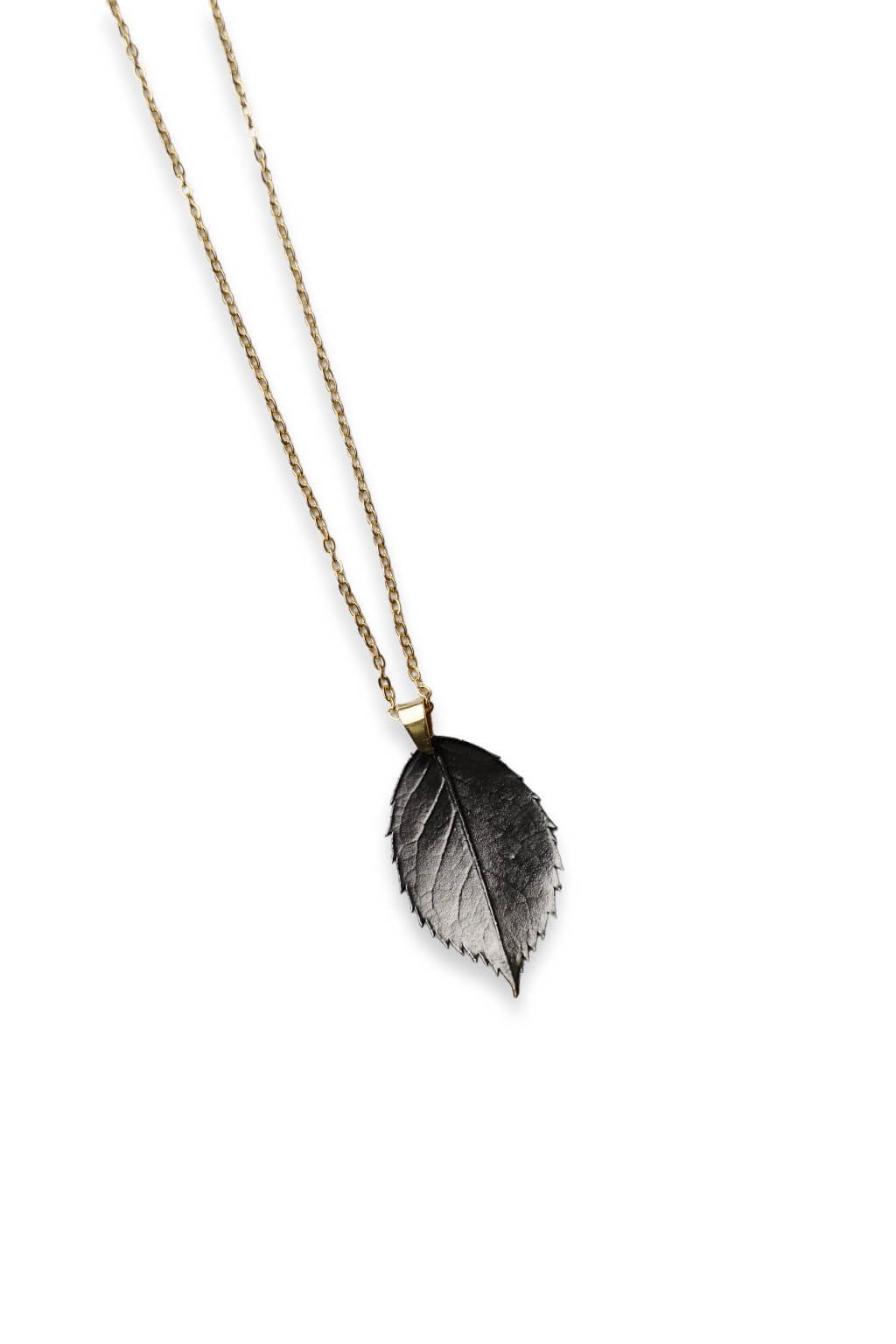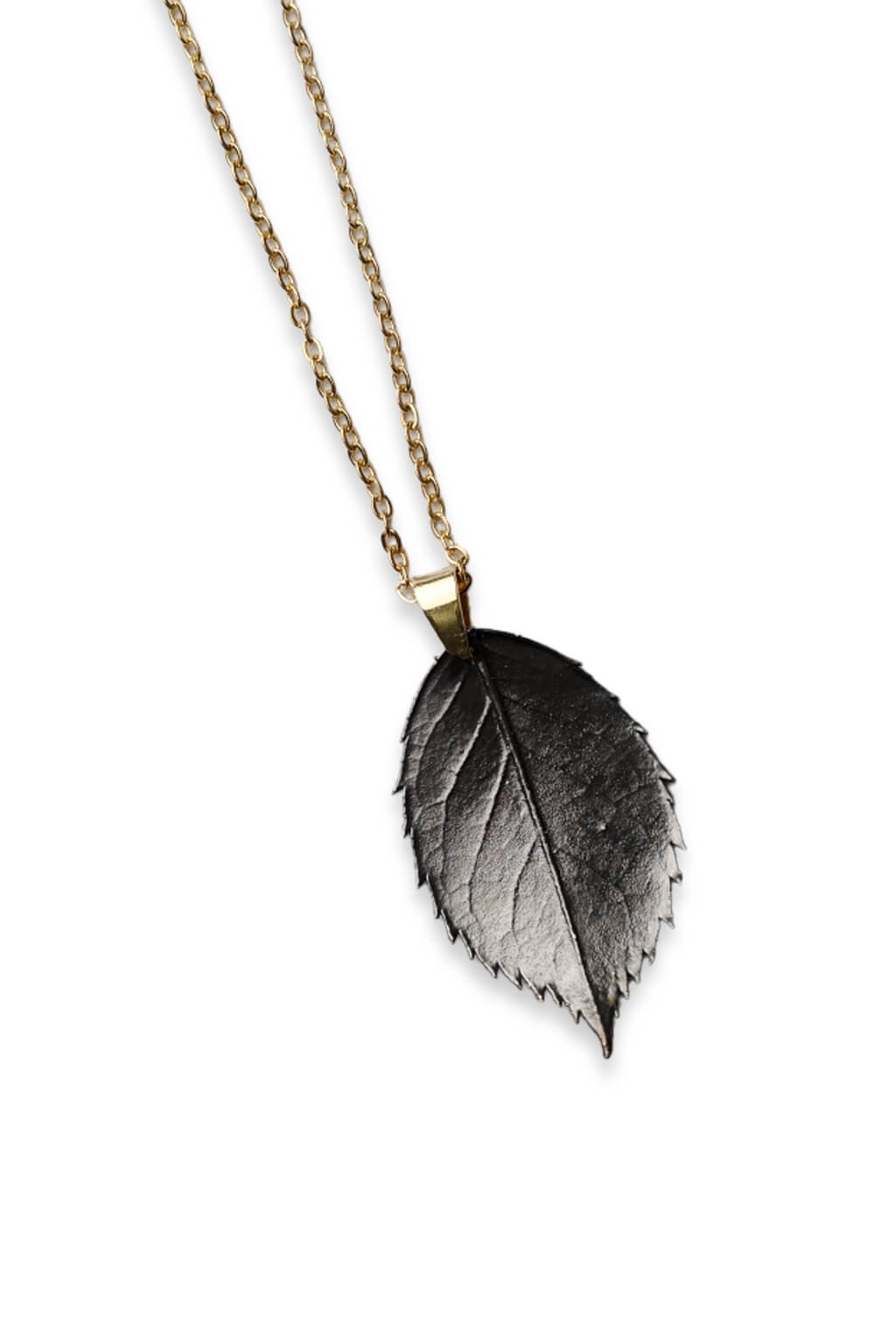 Tento šperk určite neunikne pozornosti. Skutočný list ruže s medenou povrchovou úpravou, ktorý je ďalej ešte postriebrený a rutheniovaný. Prívesok tak nadobúda špecifický patinovaný vzhľad.