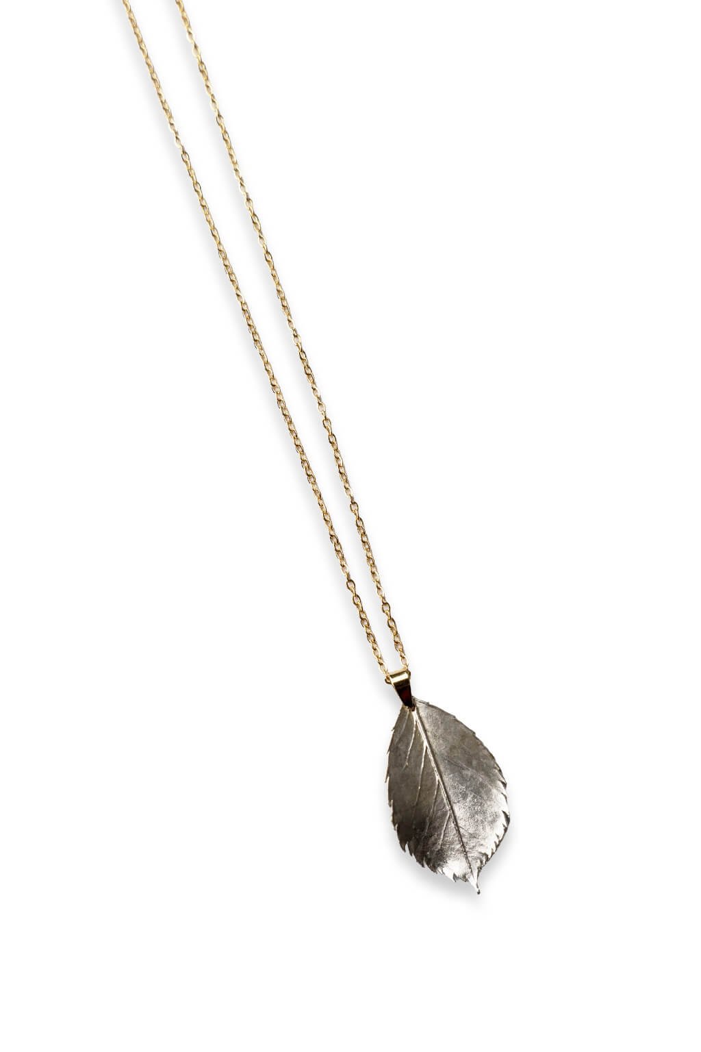 Tento šperk určite neunikne pozornosti. Skutočný list ruže s medenou povrchovou úpravou, ktorá je ďalej ešte postriebrená, prinesie unikátny dotyk prírody do vašej šperkovnice.