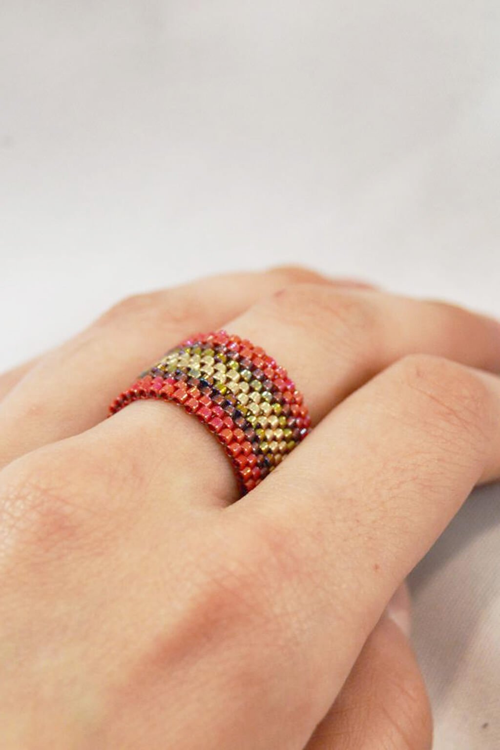 Prstienok je ručne šitý z kvalitných japonských korálikov. Krásny nežný doplnok, ktorý vyzerá na ruke naozaj nádherne, zaujme na prvý pohľad a dodá eleganciu každému outfitu.