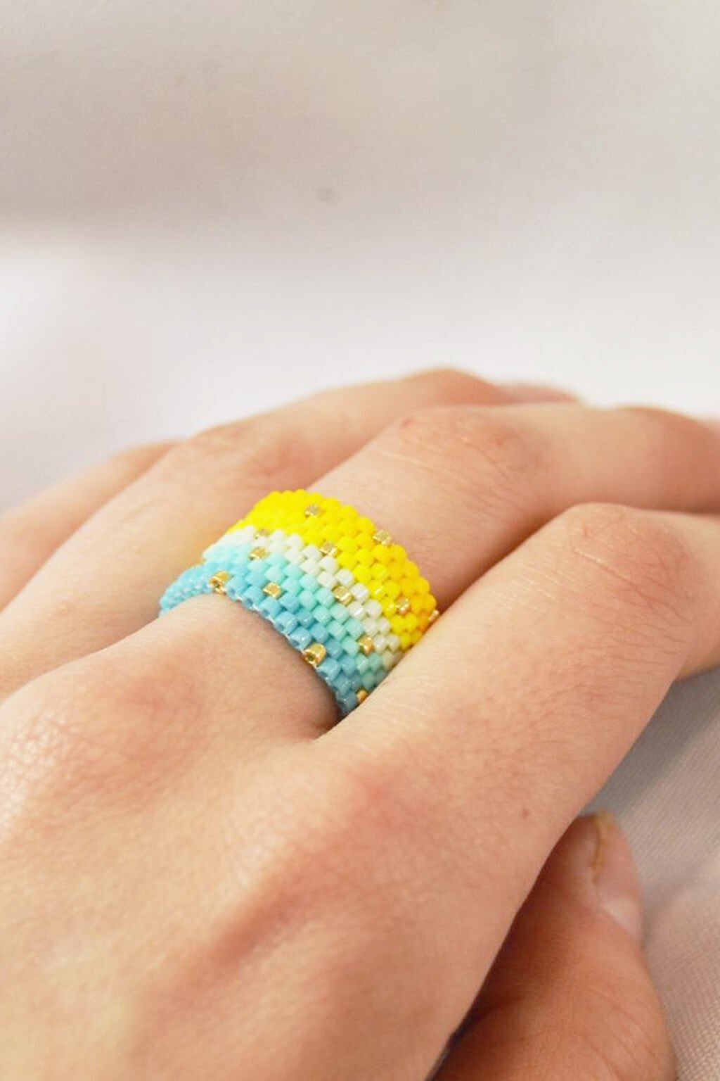 Prstienok je ručne šitý z kvalitných japonských korálikov. Krásny nežný doplnok, ktorý vyzerá na ruke naozaj nádherne, zaujme na prvý pohľad a dodá eleganciu každému outfitu.