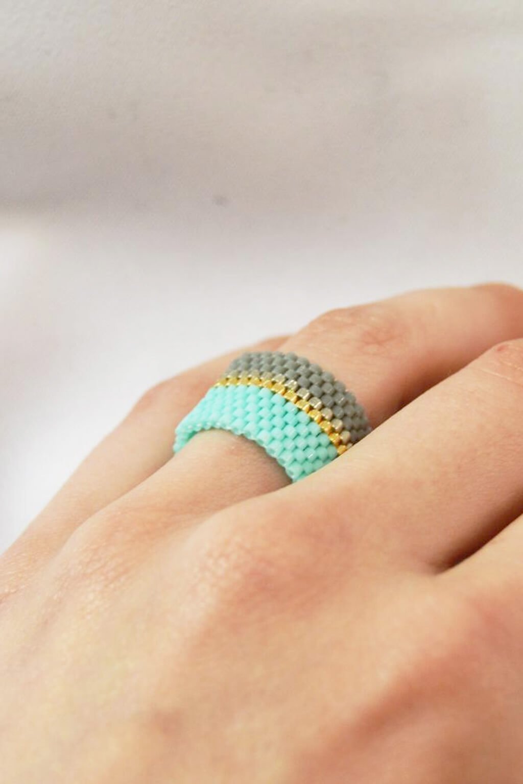 Prstienok je ručne šitý z kvalitných japonských korálikov. Krásny nežný doplnok, ktorý vyzerá na ruke naozaj nádherne, zaujme na prvý pohľad a dodá eleganciu každému outfitu.