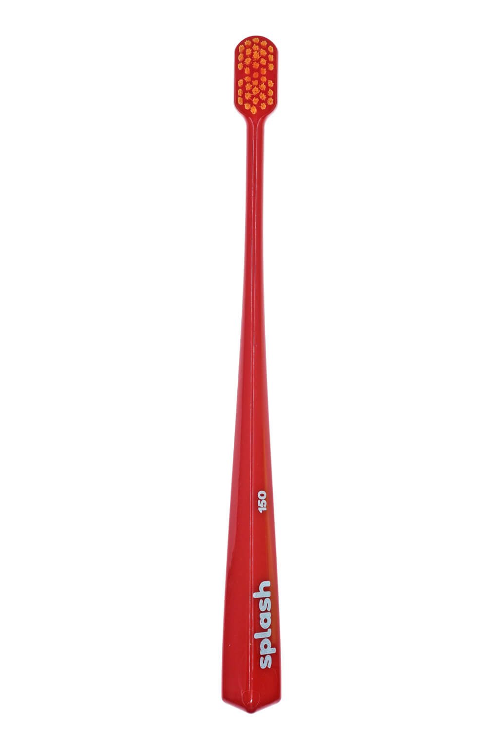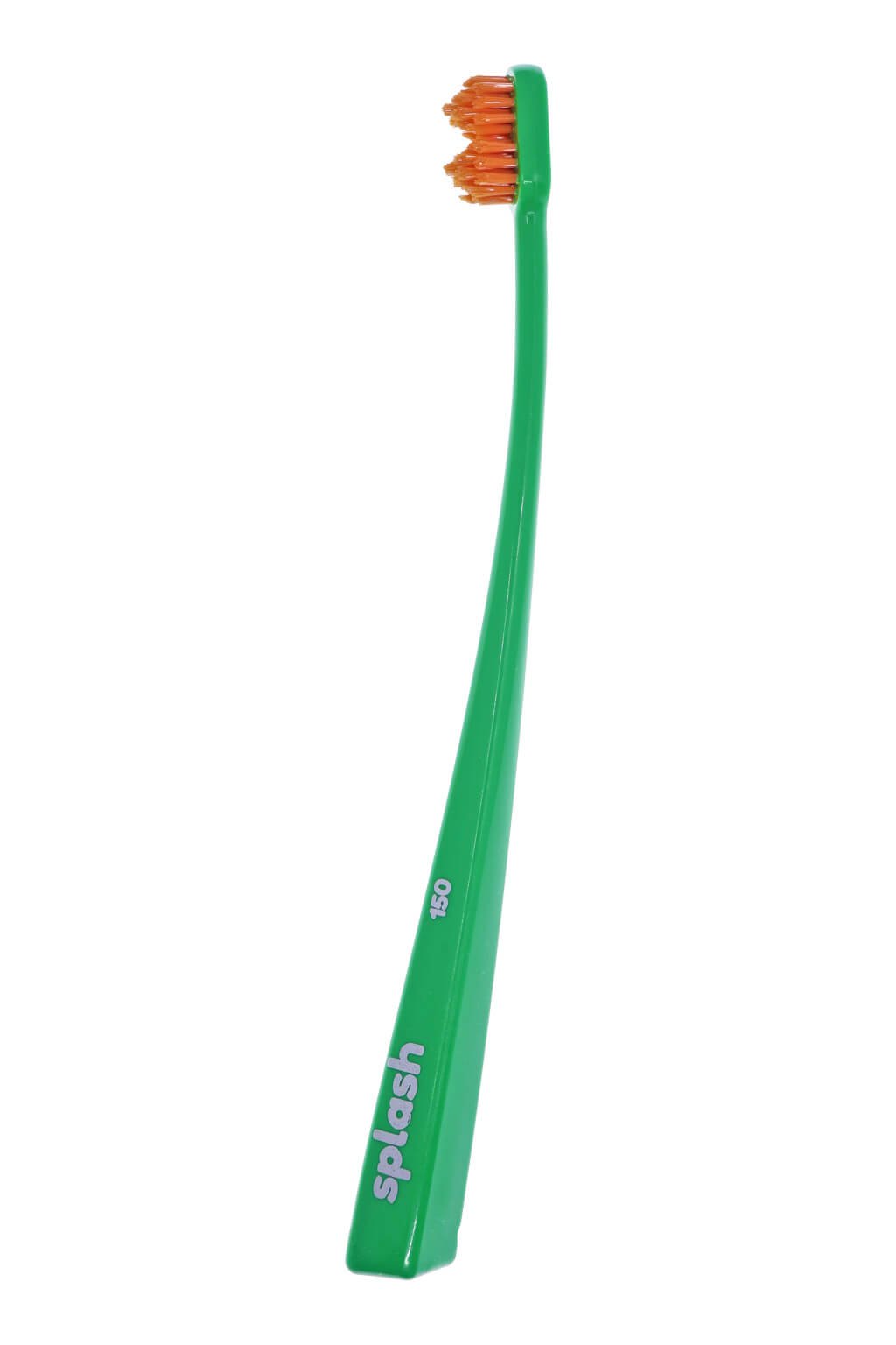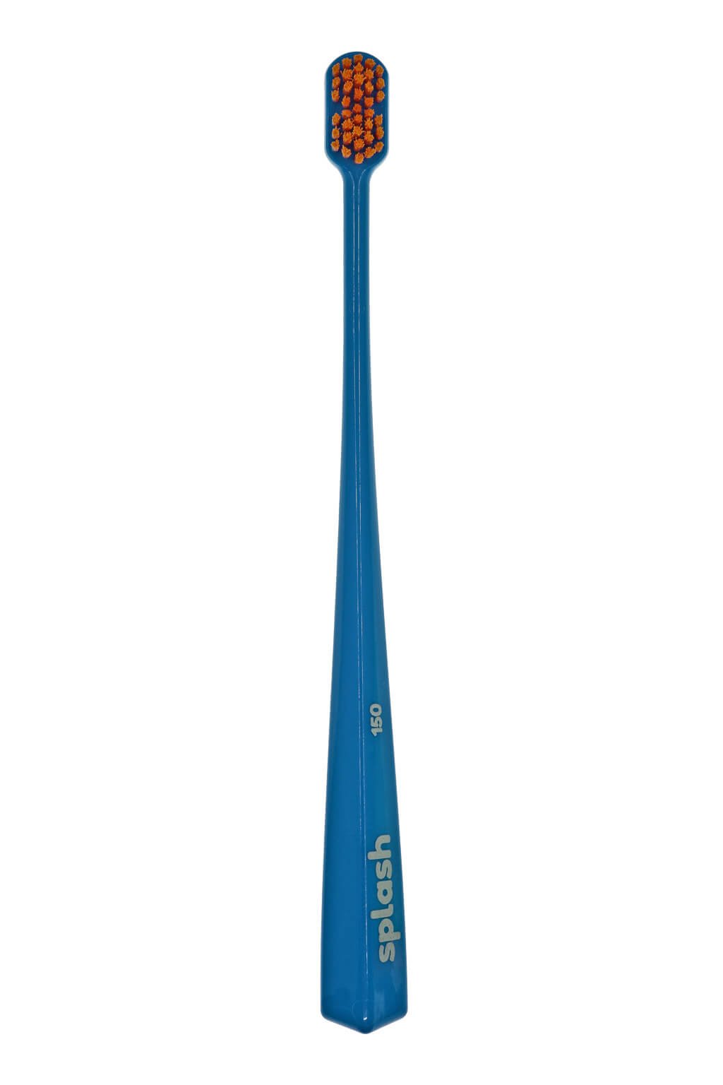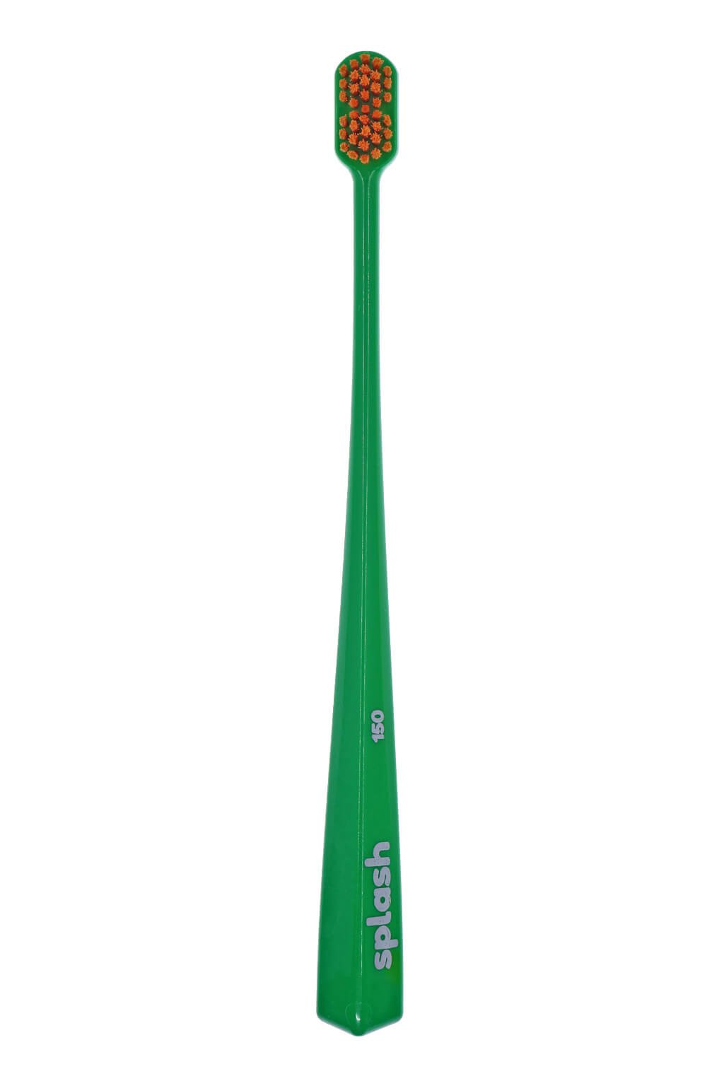 Kefka na zuby Splash brush 150 je vybavená štetinami o hrúbke 0,15 mm a 2 pyramídovým tvarom hlavičky. Jej pružná ohnutá rukoväť zabezpečuje dokonalé čistenie zubov, takmer kompletnú čistotu medzizubných priestorov a ďasien. Splash Brush ľahko dosiahne do každého kúta, vrátane zadnej steny zubov.
