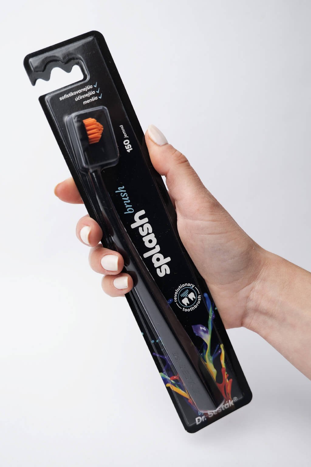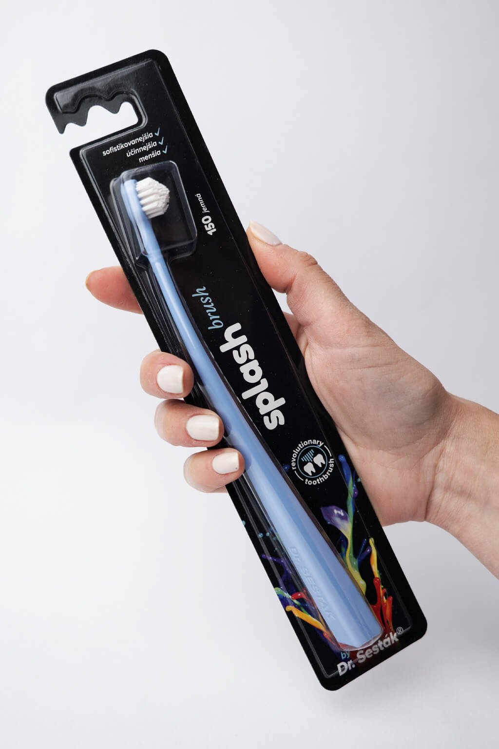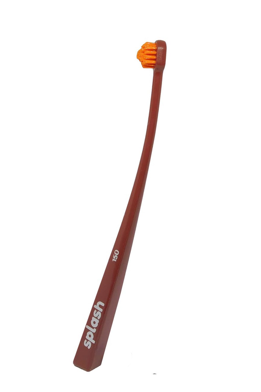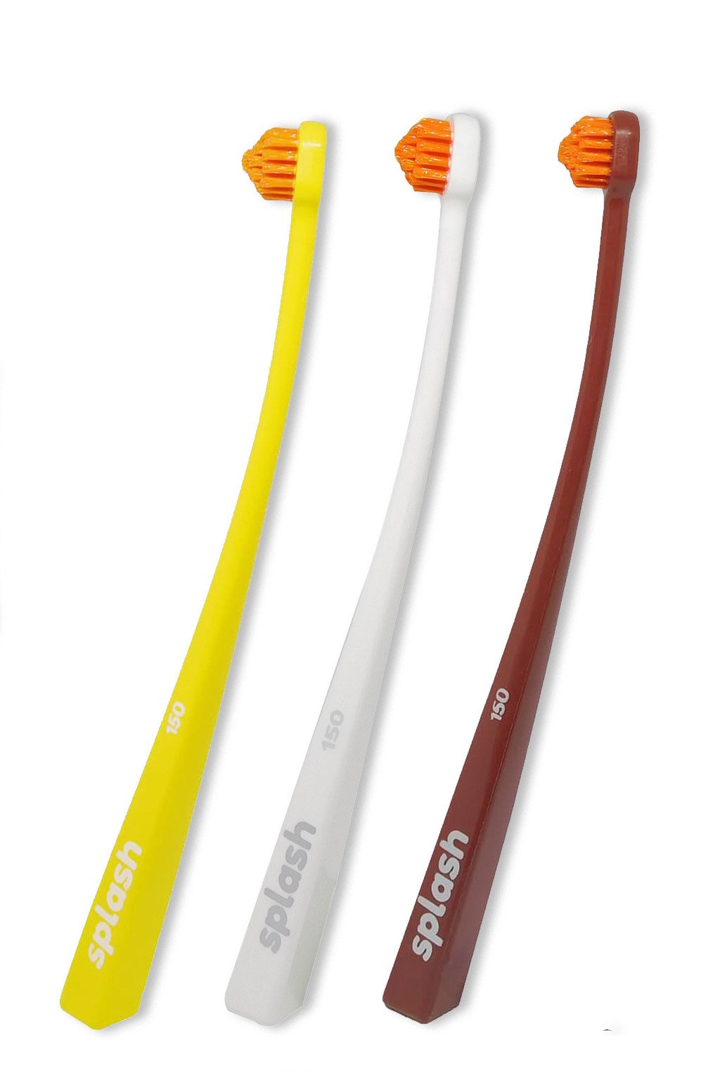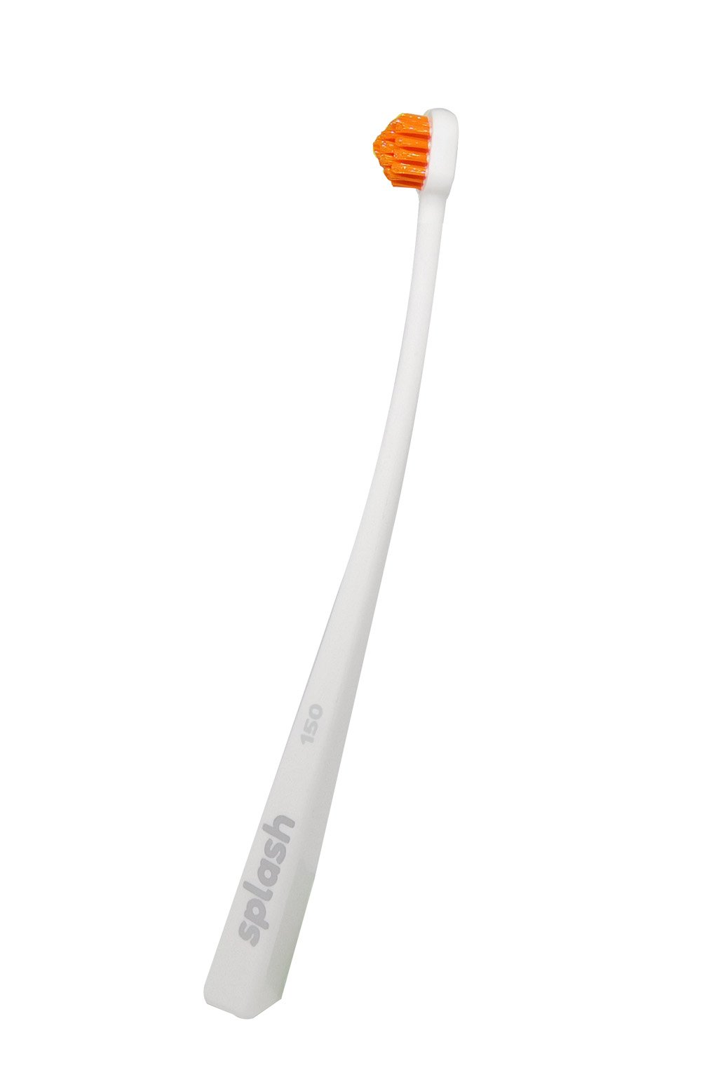 Kefka na zuby Splash brush 150 je vybavená štetinami o hrúbke 0,15 mm a pyramídovým tvarom hlavičky. Jej pružná ohnutá rukoväť zabezpečuje dokonalé čistenie zubov, takmer kompletnú čistotu medzizubných priestorov a ďasien. Splash Brush ľahko dosiahne do každého kúta, vrátane zadnej steny zubov.