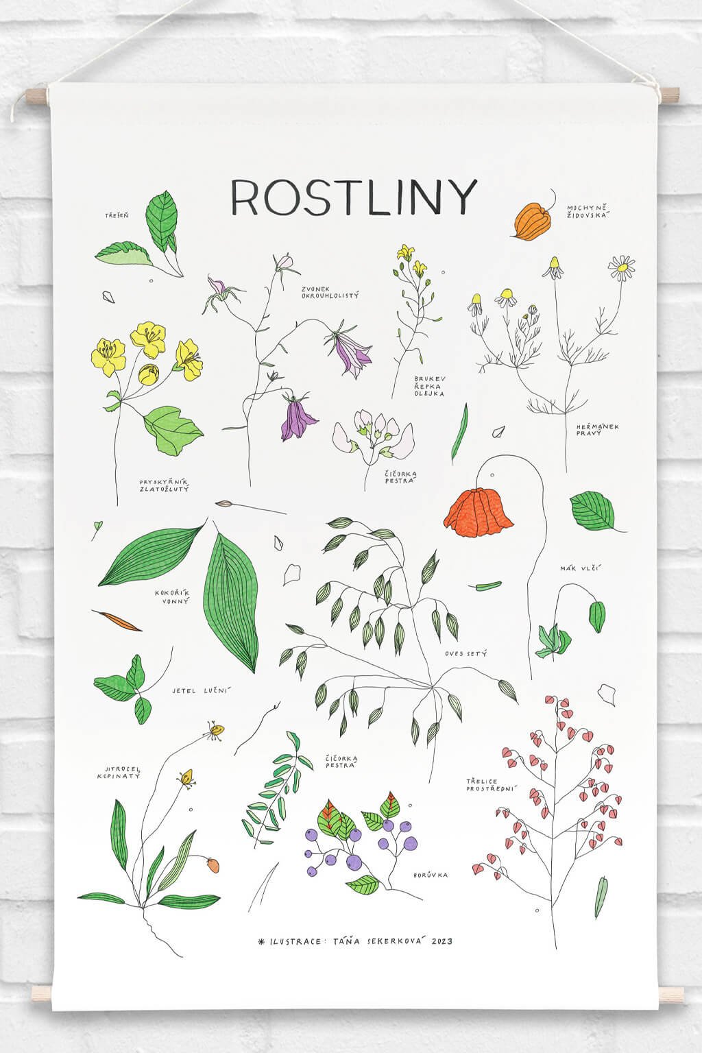 Krásna farebná autorská ilustrácia rastlín od ilustrátorky Táni Sekerkovej.