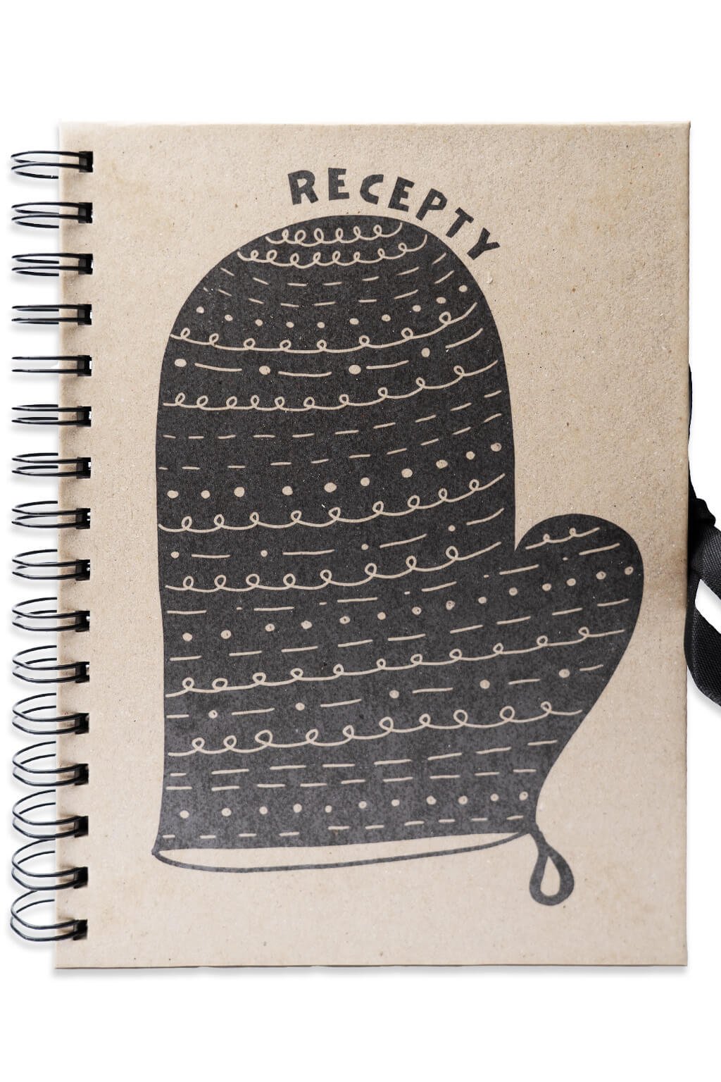 Na doskách nájdete autorskú ilustráciu kuchárskej rukavice, ktorá dodá vášmu vareniu ešte väčšie čaro. Zápisník je navyše možné vďaka čiernej stuhe zaviazať.