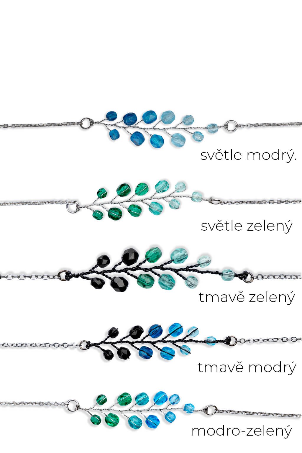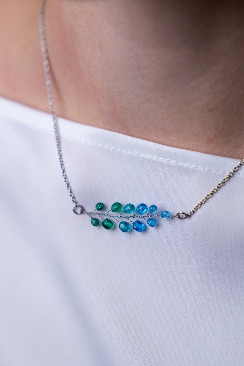 Retiazka s papraďou - modré a zelené odtiene