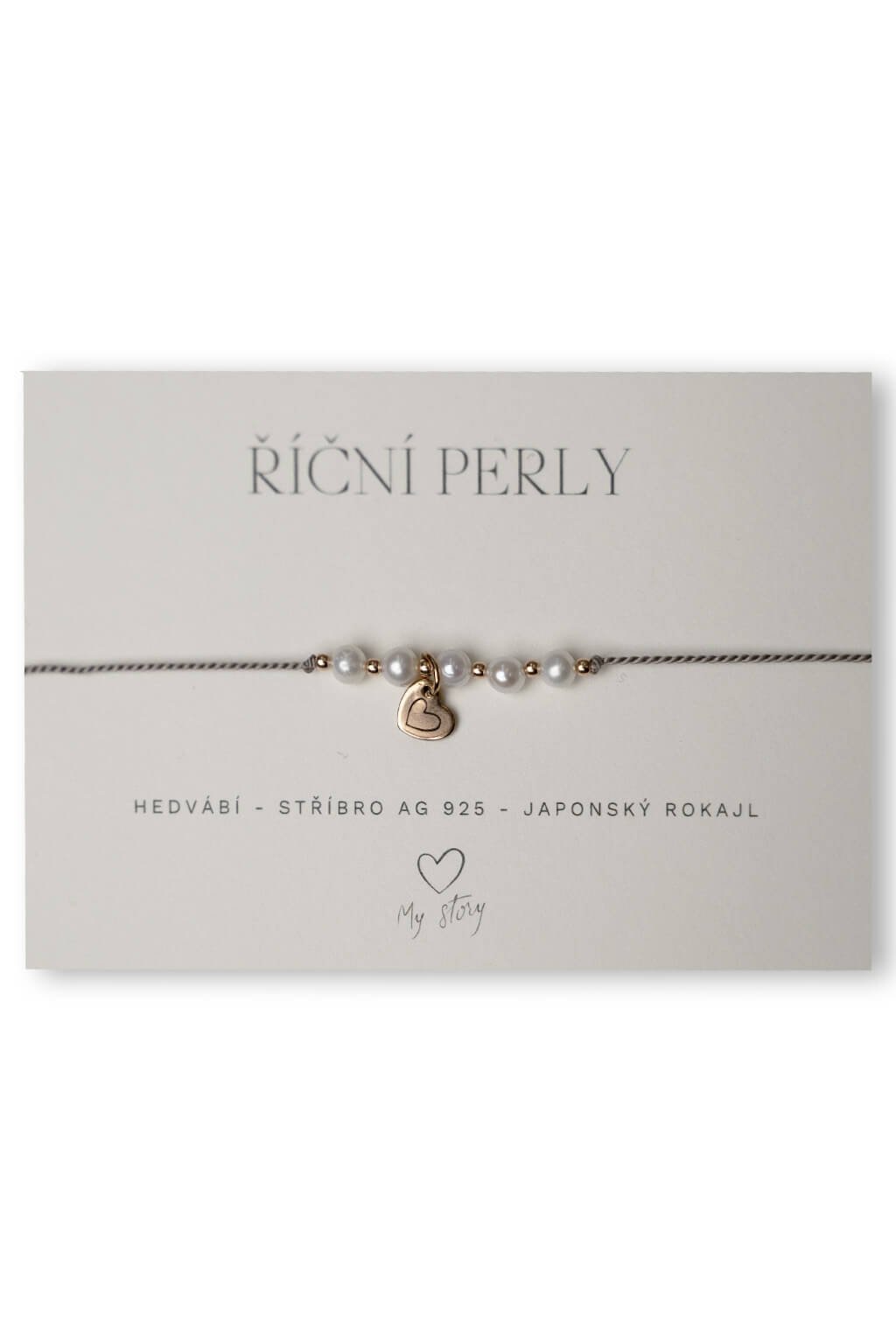 Náramok s riečnymi perlami, rosegold drobnými korálkami a romantickým srdiečkom je šperk, ktorý stelesňuje eleganciu a ženskosť. Tento náramok je tvorený drobnými riečnymi perlami, ktoré sú umiestnené na hodvábnej šnúrke sivej farby.