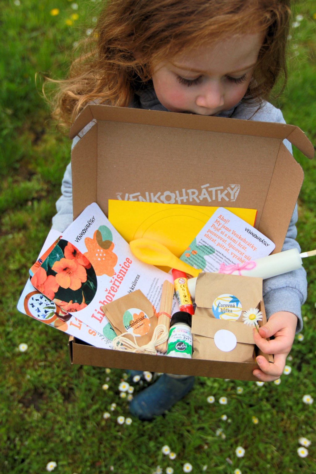 Ďalej v krabičke nájdete: drevené tyčinky, drevené korálky z Jizerských hôr, recyklované gombíky, české farebné priadze, balónik, bavlnený povrázok a malé prekvapenie.