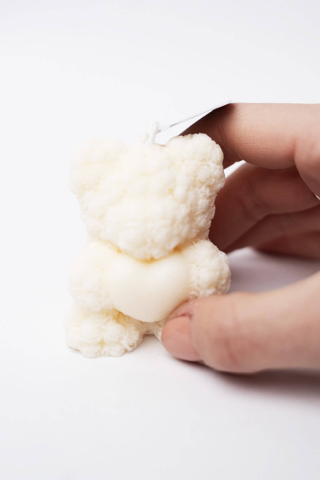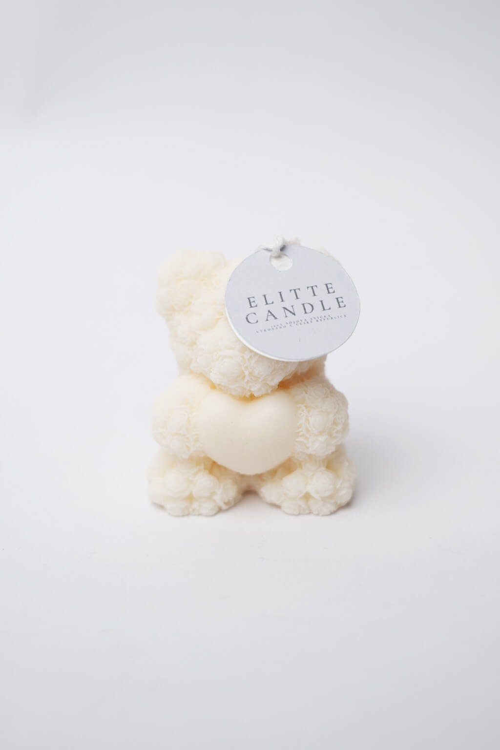 Exkluzívna sójová sviečka v tvare medvedíka so srdcom spája nehu s prírodnou krásou.