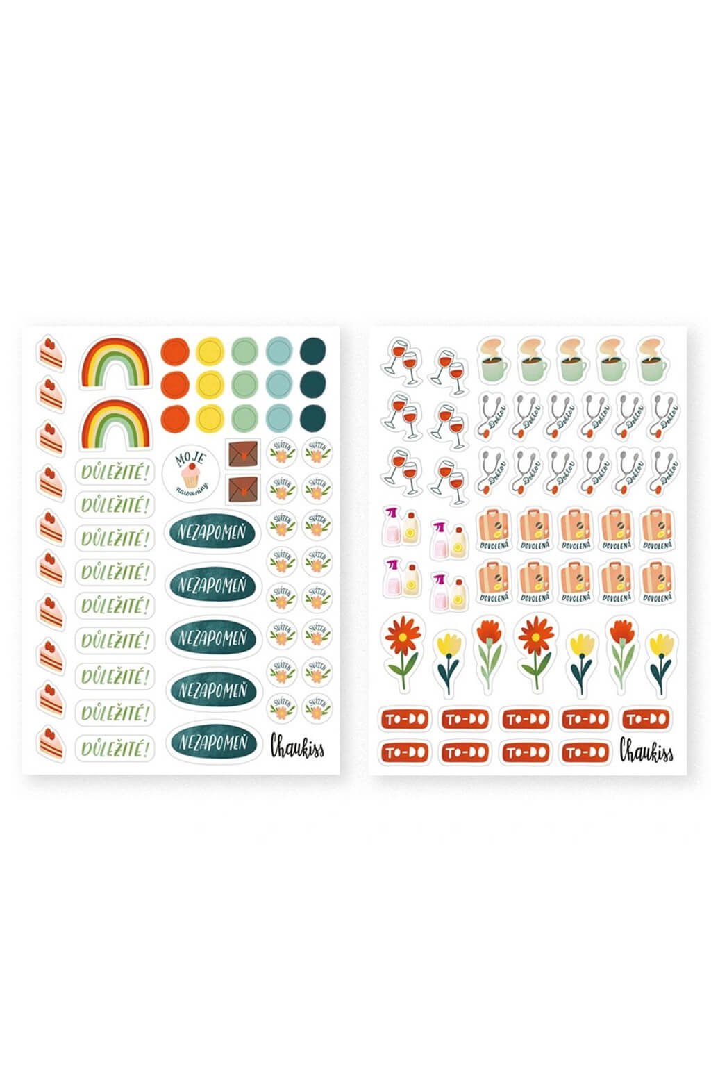 Vyzdobte si náš ilustrovaný diár na rok 2025 nálepkami. Označte si dni dovolenky, návštevu u lekára, sviatky, dni, ktoré nesmiete zabudnúť a ďalšie! Balenie obsahuje 2 hárky nálepiek vo formáte A6.