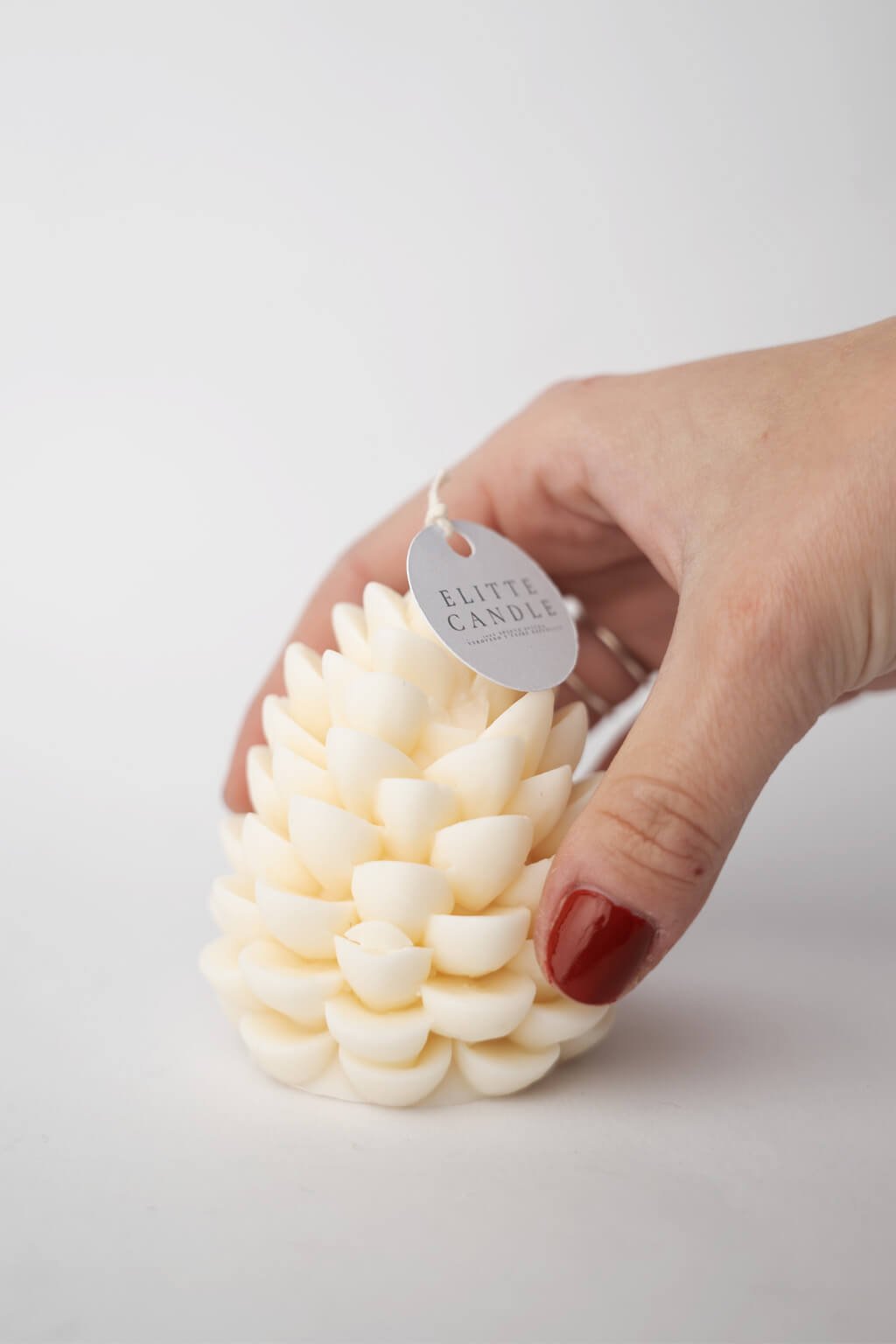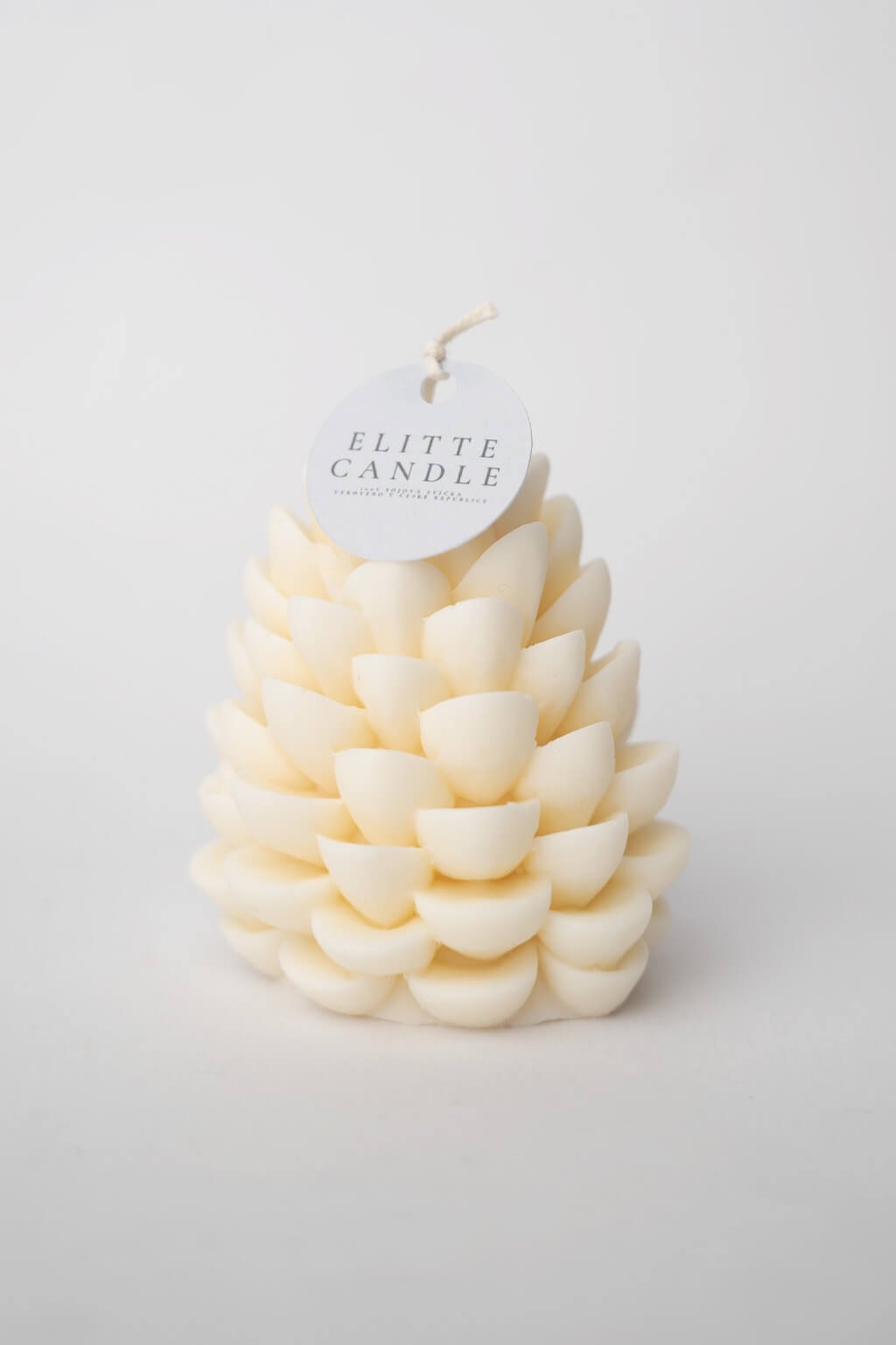 Exkluzívna sójová sviečka v tvare šišky spája prírodnú eleganciu s jedinečným dizajnom.