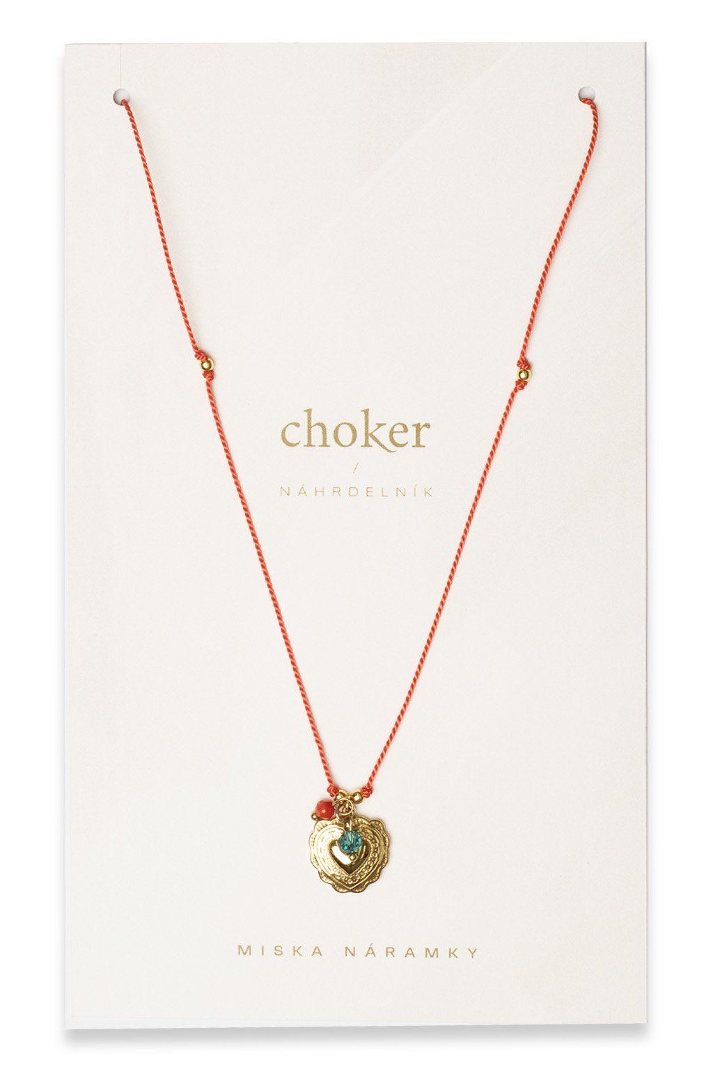 Štýlový choker s pozláteným príveskom so srdiečkom a jemnými minerálmi vnesie do vášho šatníka romantiku a eleganciu.