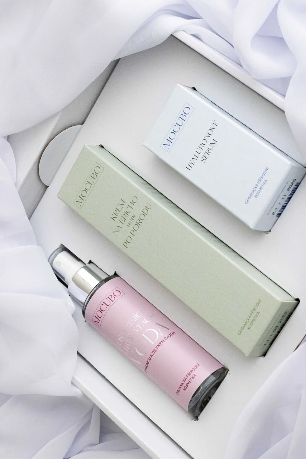 Sada obsahuje osviežujúcu hydratačnú vodu, hyalurónové sérum a krém na brucho nielen po pôrode. Táto starostlivo vybraná kolekcia poskytuje komplexnú starostlivosť pre pokožku tela aj tváre. Pomôže vám nabrať novú energiu a užiť si zaslúžený relax.