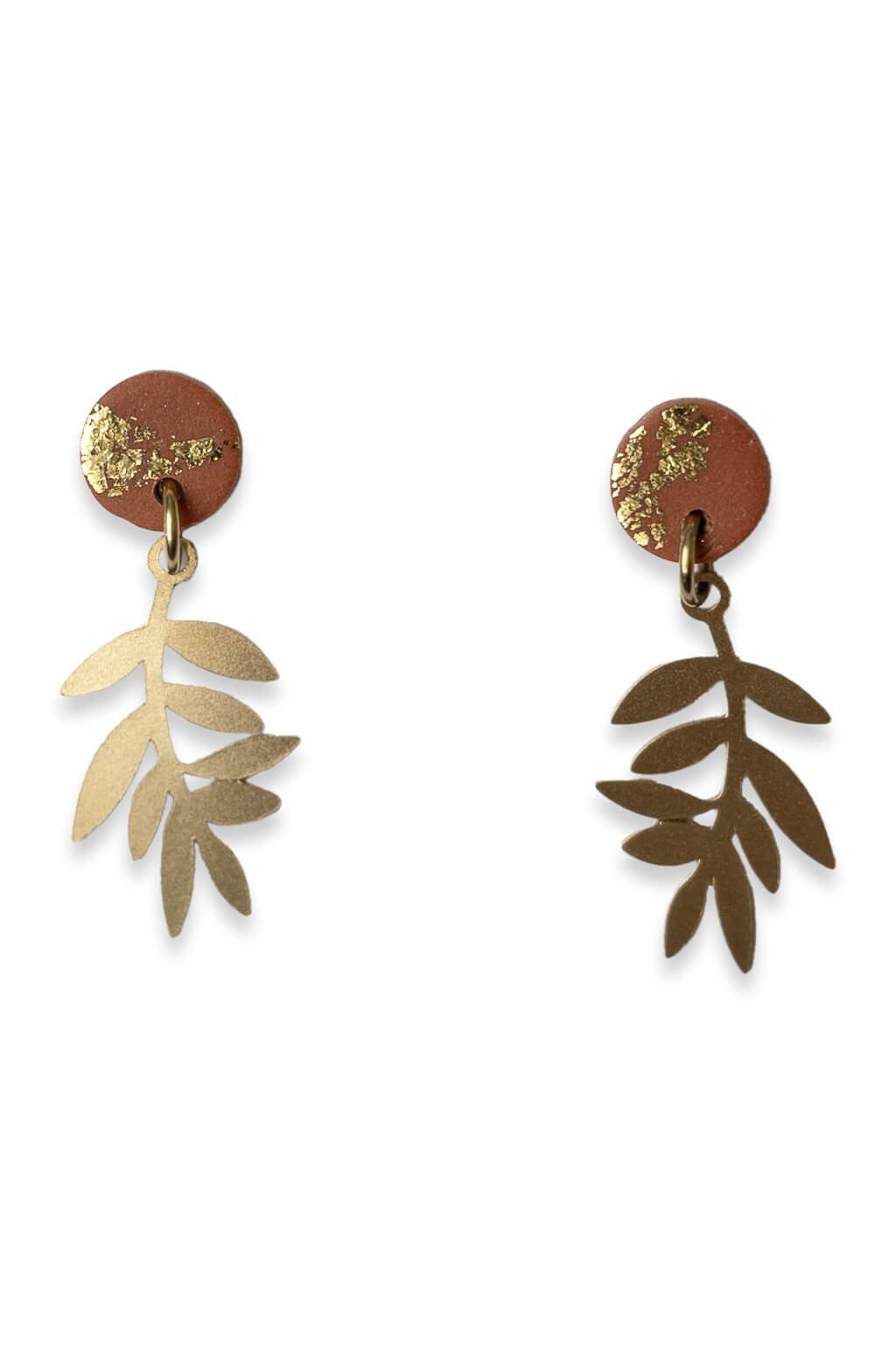 Čisté línie, abstraktné tvary a kvapka extravagancie, to sú hlavné atribúty týchto originálnych náušníc. Svojou decentnou výraznosťou a farebnosťou vnesú nezameniteľný štýl každému outfitu. Zaujmite svojou originalitou a doplňte svoj look týmto výnimočným kúskom vyrobeným z terakotového polyméru s kvapkou zlata a z mosadze. Každý detail je premyslený a každý kúsok je ručne vyrobený s láskou.