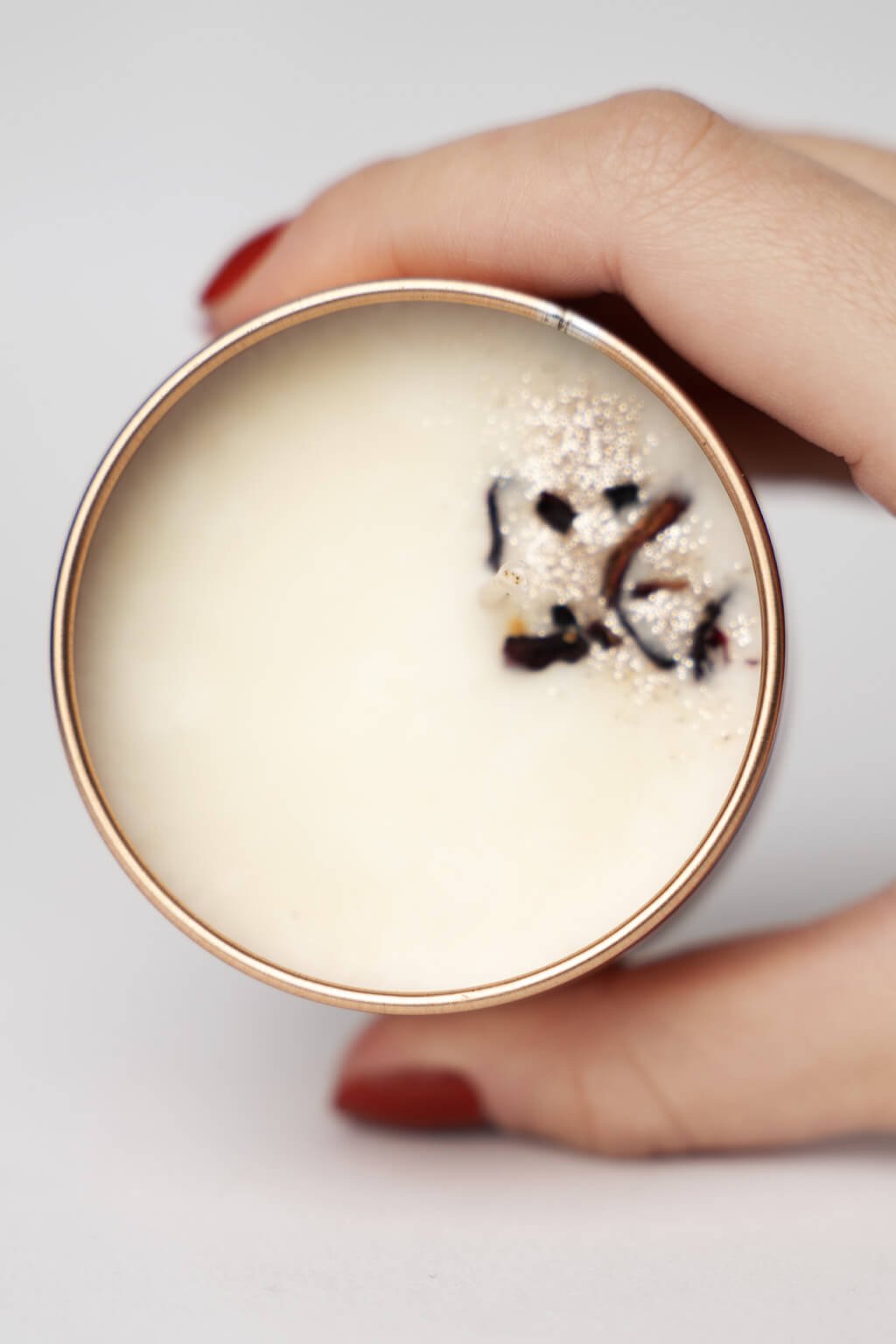 Sviečka je vegánska a okrem sójového vosku (GMO free) obsahuje aj kokosový olej, vďaka ktorému nebudú na sviečke vznikať praskliny, lepšie sa spojí s vôňou a nespôsobí tak nepríjemnú bolesť hlavy. Sviečku položte na rovný povrch v dobre vetranej miestnosti, nenechávajte ju bez dozoru a v blízkosti horľavých povrchov.