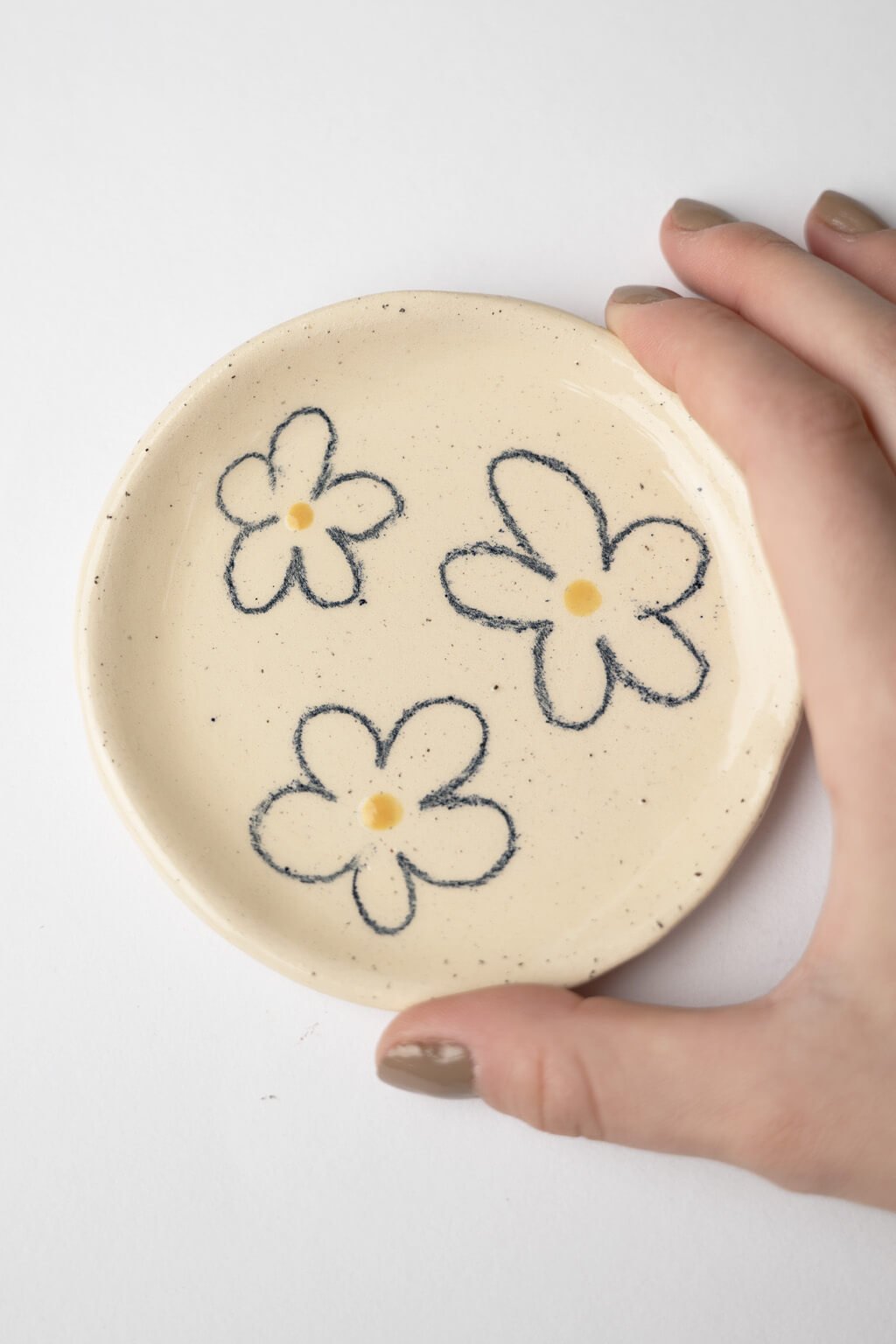 - Keramické tanieriky: Ručne vyrábané, 10 cm široké.