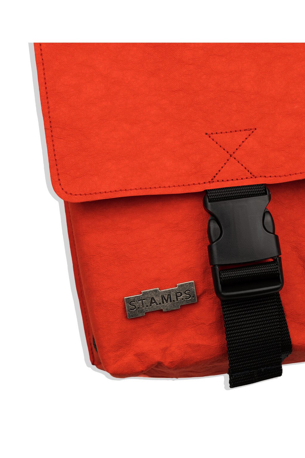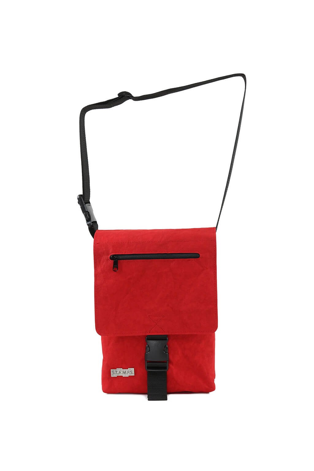 Taška sa uzatvára pomocou patentnej pracky a ponúka priestrannú hlavnú kapsu s dvoma menšími vreckami na usporiadanie drobností, ako sú okuliare alebo peňaženka. Má nastaviteľný popruh a dve vonkajšie vrecká na zips, jednu vpredu a druhú vzadu. Navyše je zdobená kovovou doštičkou s logom S.T.A.M.P.S.