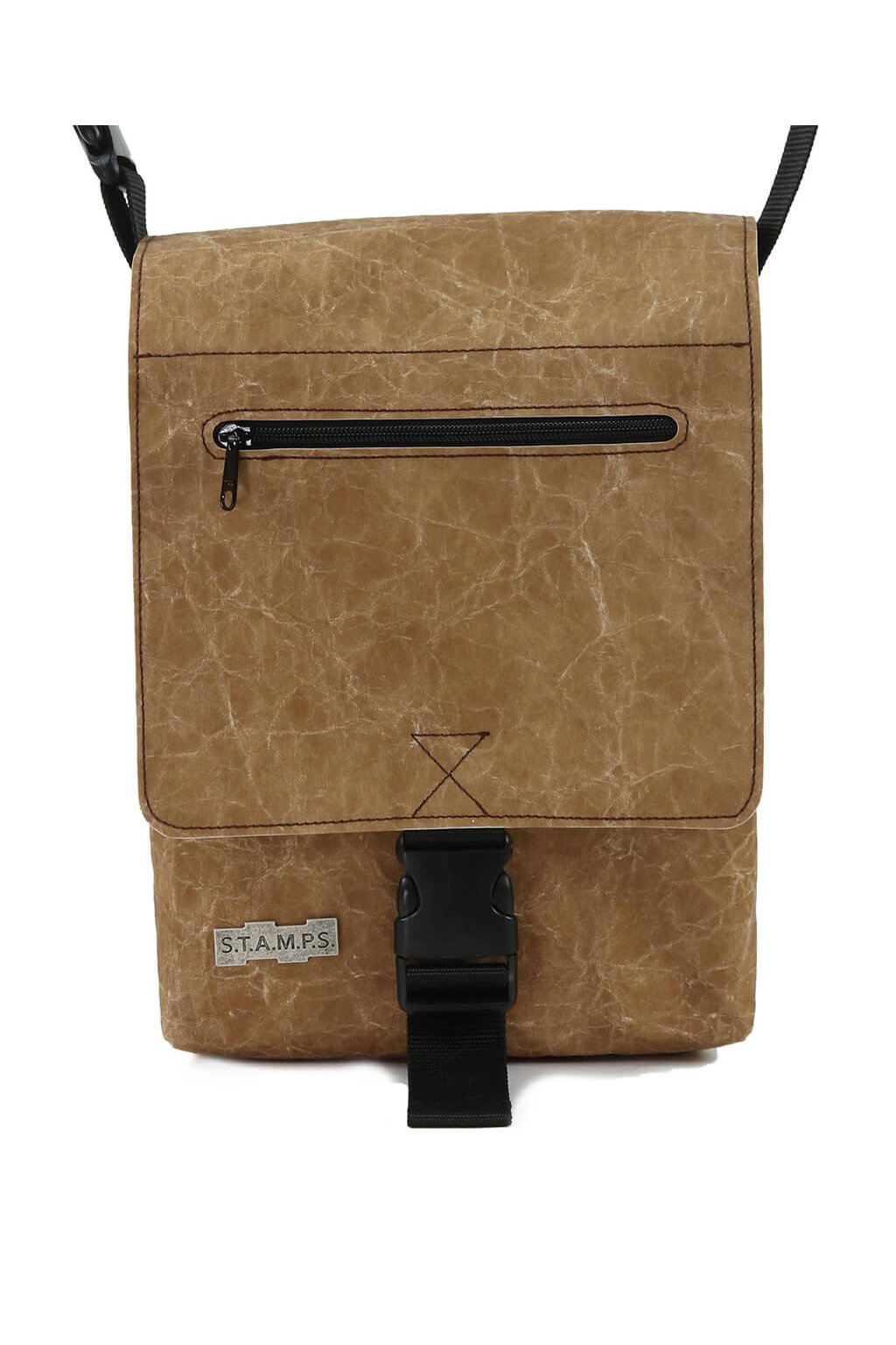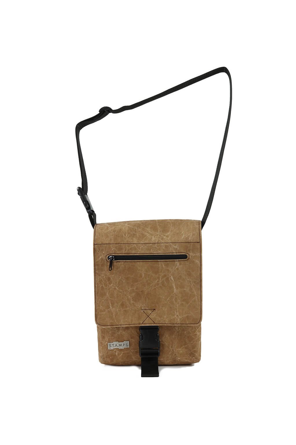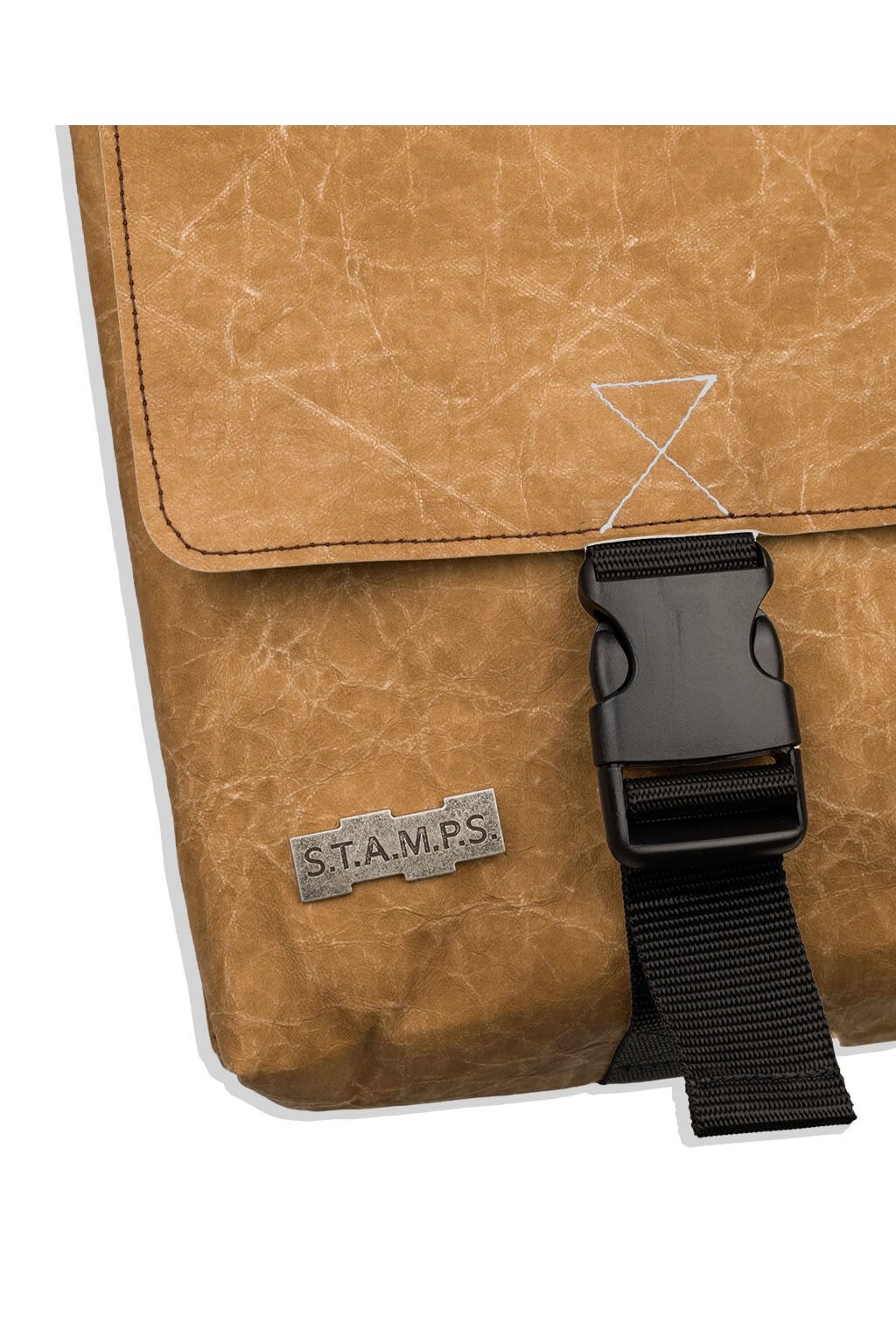 Taška sa uzatvára pomocou patentnej pracky a ponúka priestrannú hlavnú kapsu s dvoma menšími vreckami na usporiadanie drobností, ako sú okuliare alebo peňaženka. Má nastaviteľný popruh a dve vonkajšie vrecká na zips, jednu vpredu a druhú vzadu. Navyše je zdobená kovovou doštičkou s logom S.T.A.M.P.S.