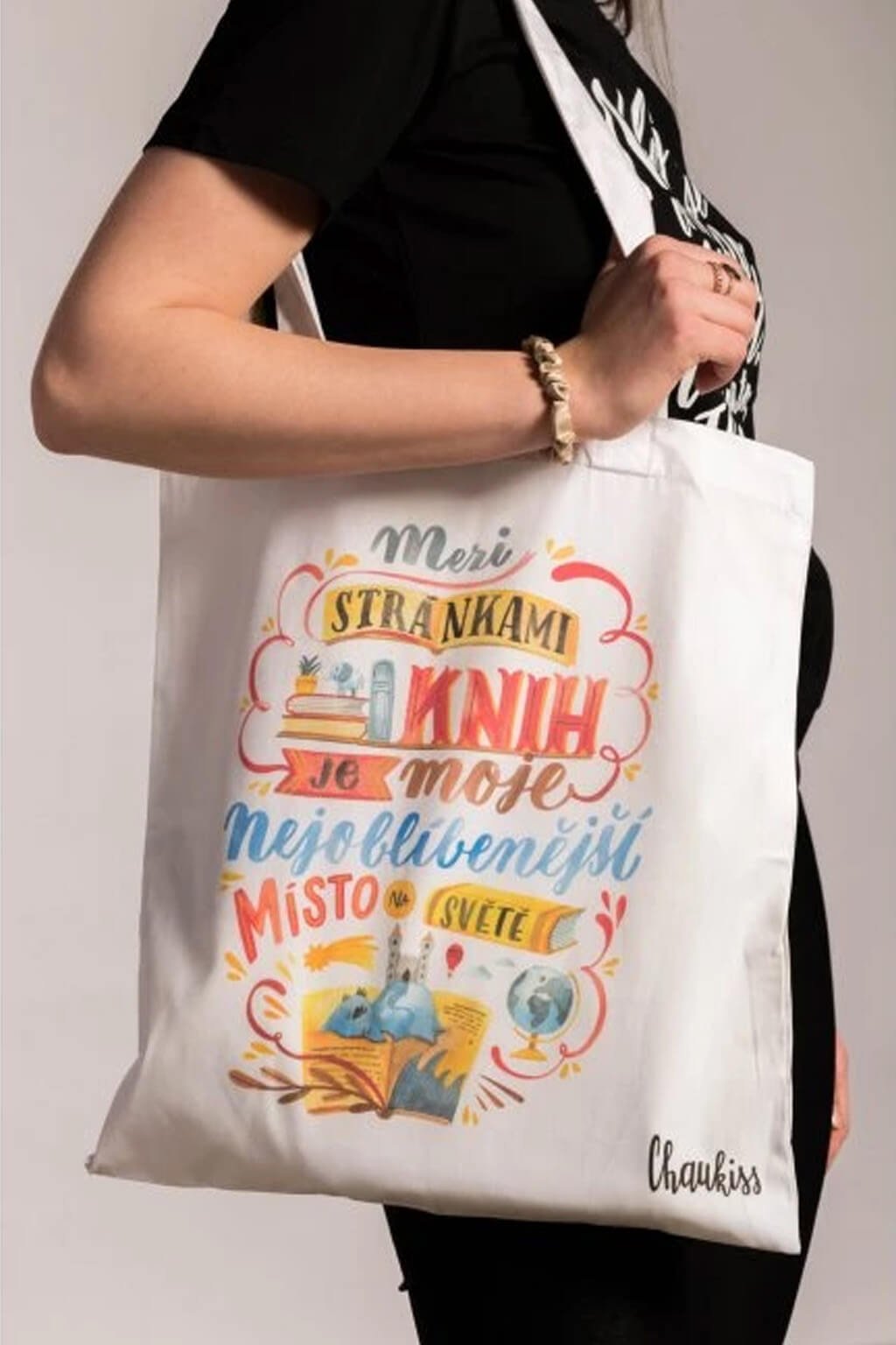 Plátená taška "Knihomol" je ideálna voľba preovníkov kníh, ktorí chcú svoje obľúbené kníhy nosiť kamkoľvek s sebou. Taška je vyrobená z kvalitného bavlneného plátna (210 gsm) a má pevné ramenné popruhy.