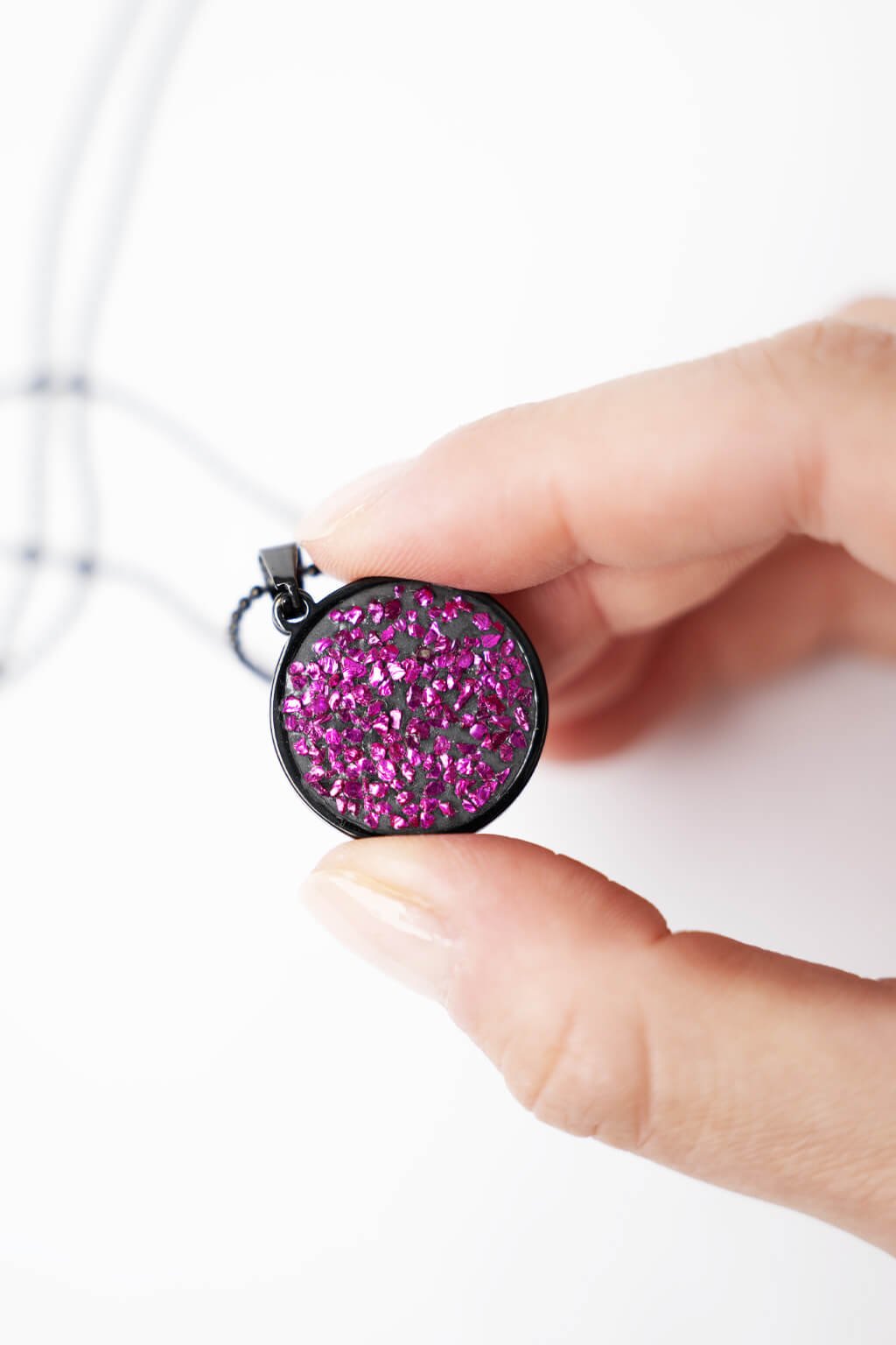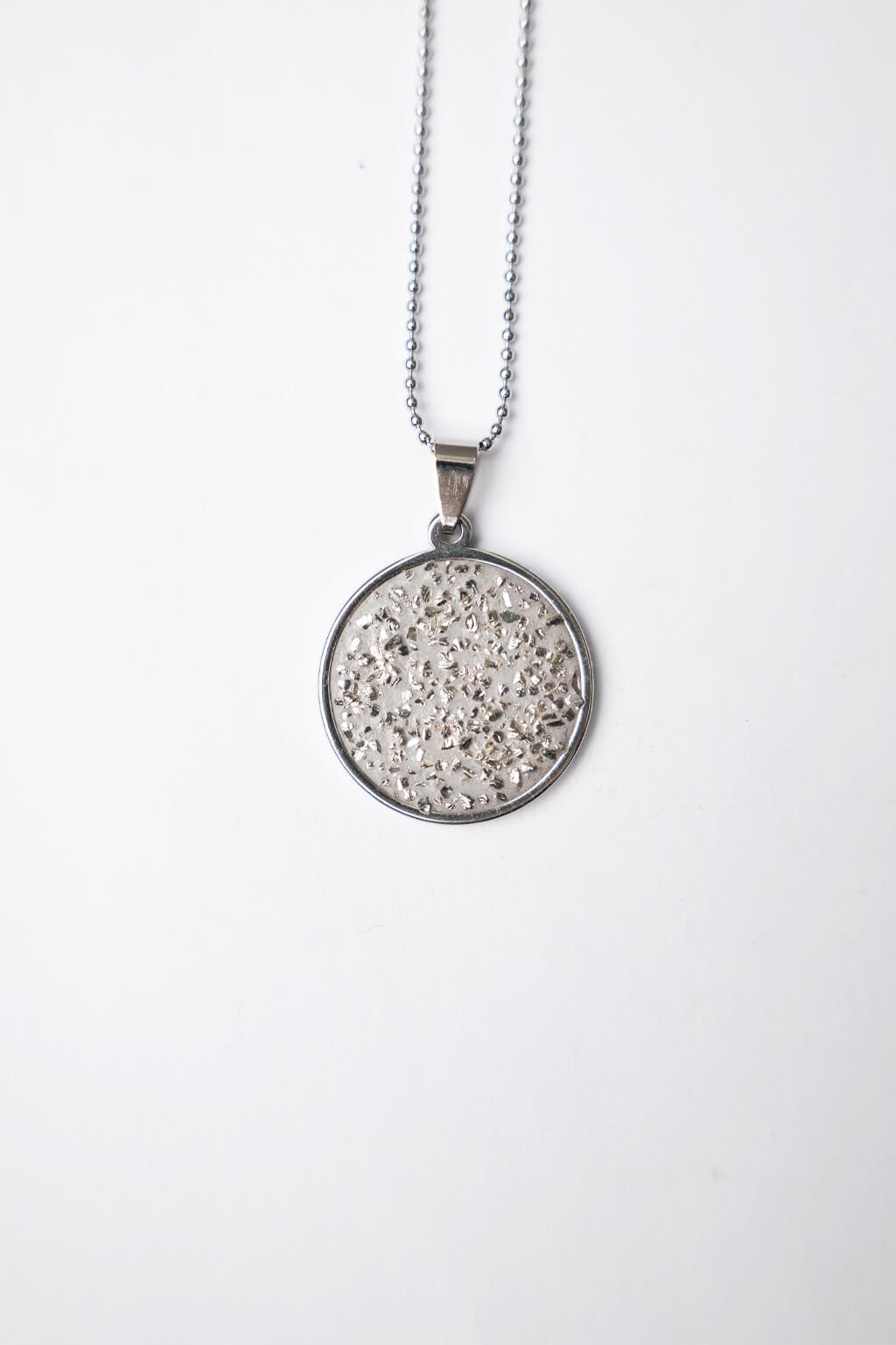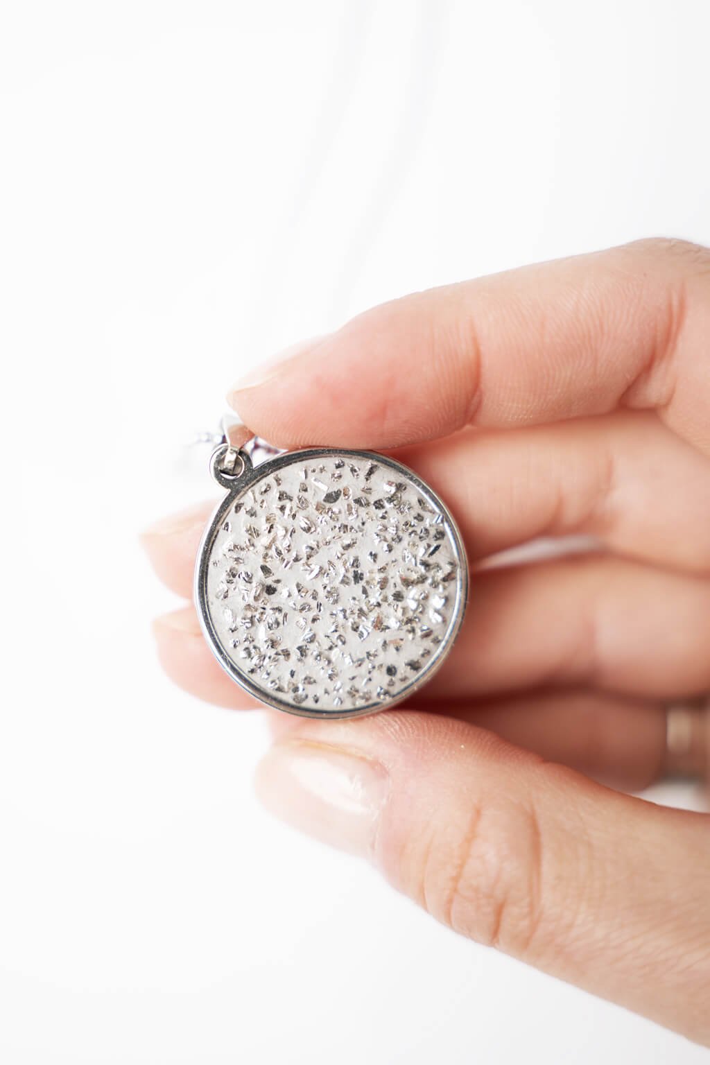 Tento ručne vyrábaný náhrdelník z dielne BATON BEADS je viac než len doplnok – je to malý umelecký objekt, ktorý môžete nosiť každý deň. Kombinácia šperkárskeho betónu, drveného skla a živice v oceľovom lôžku s priemerom 15 mm vytvára jemný, ale výrazný detail, ktorý zaujme na prvý pohľad.