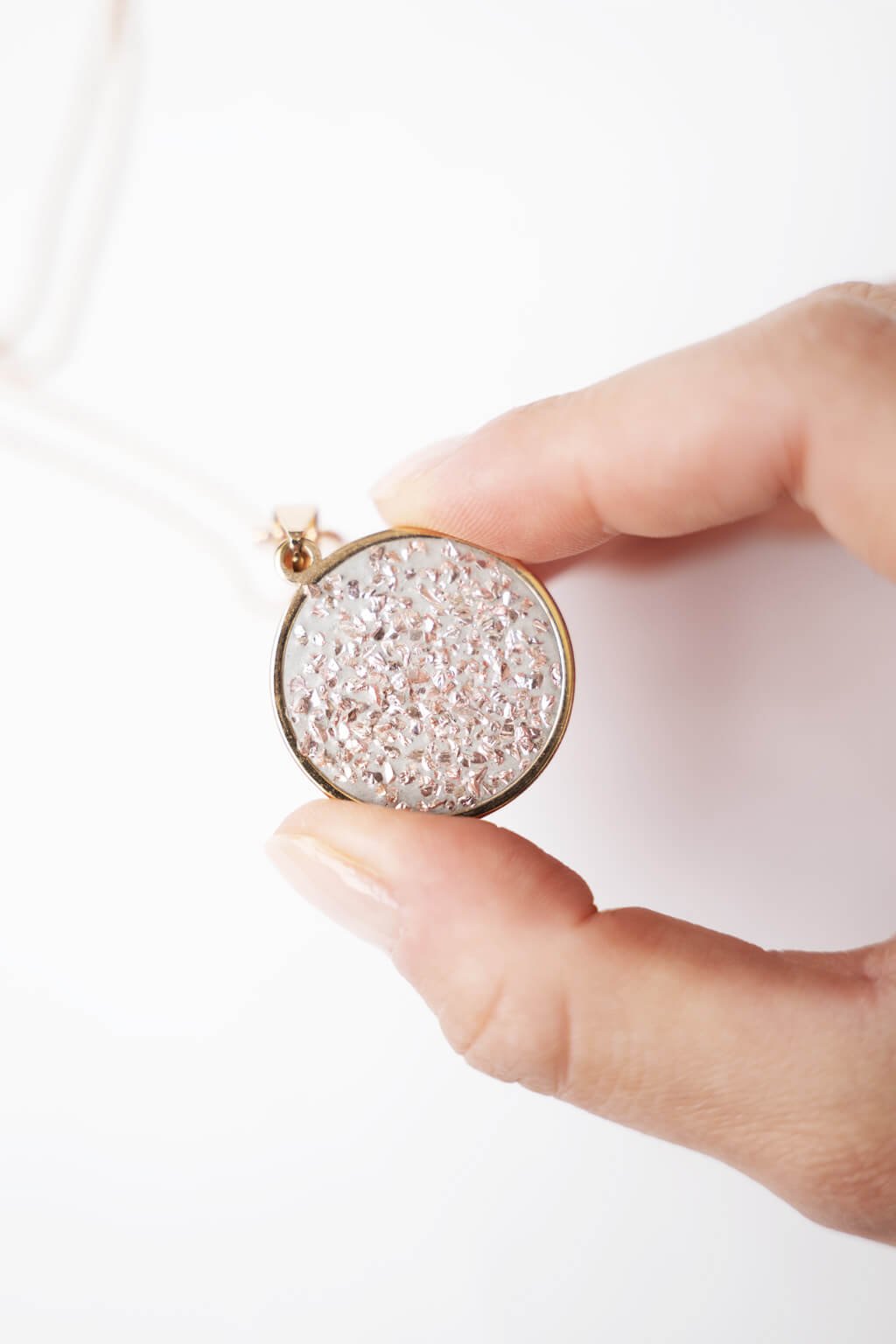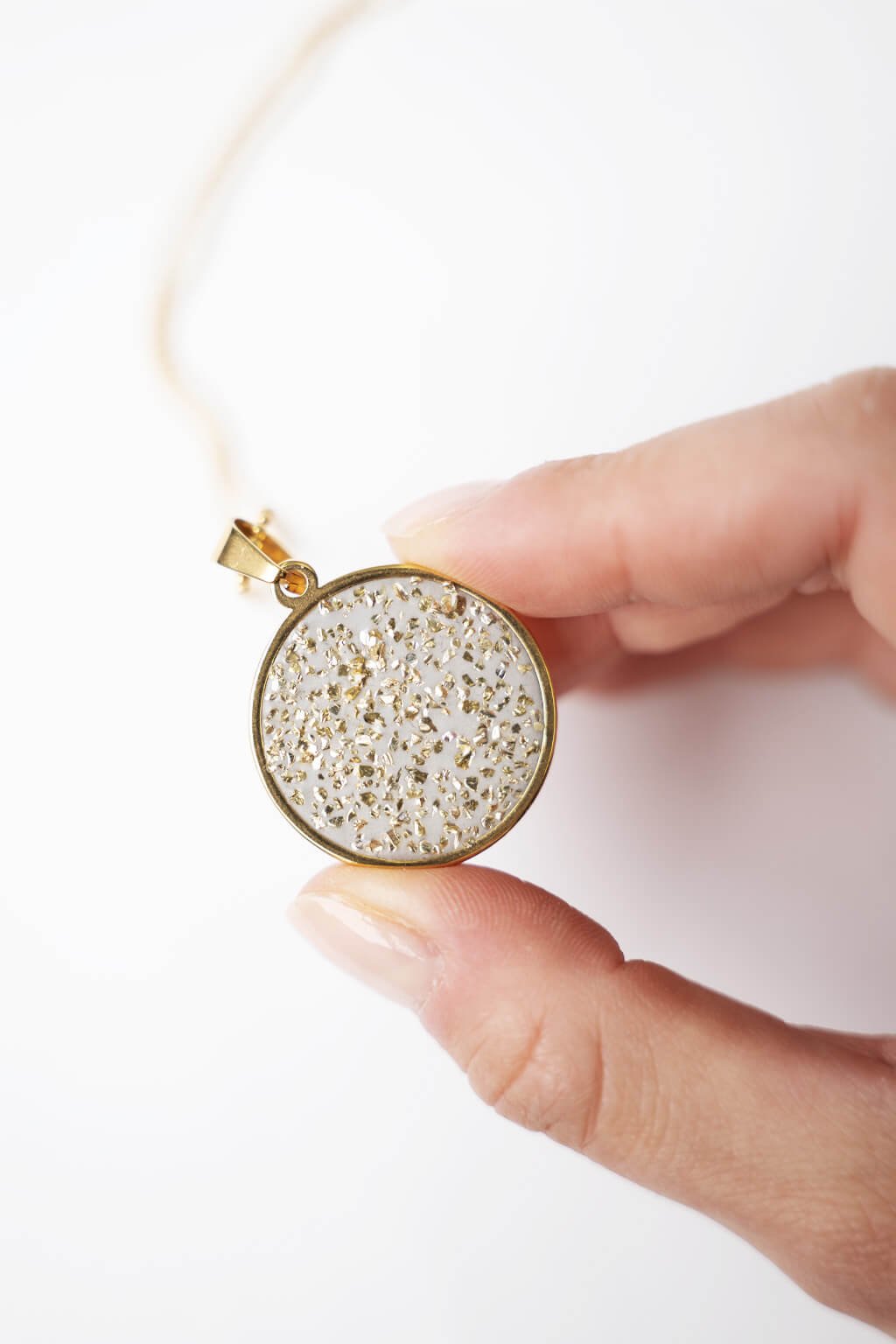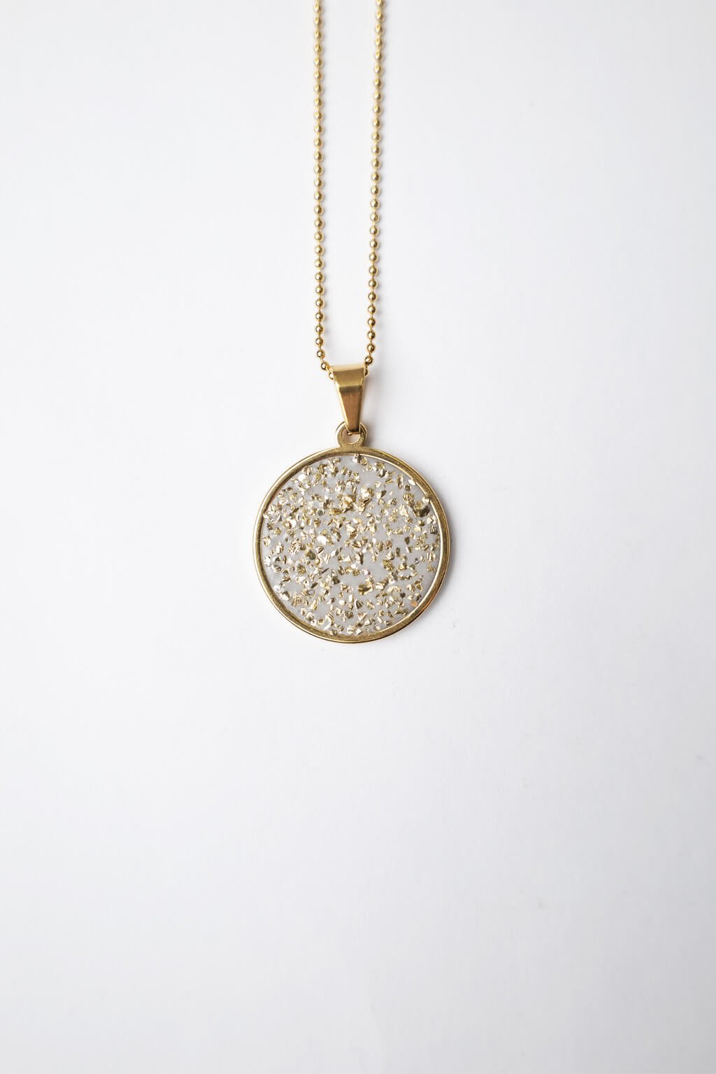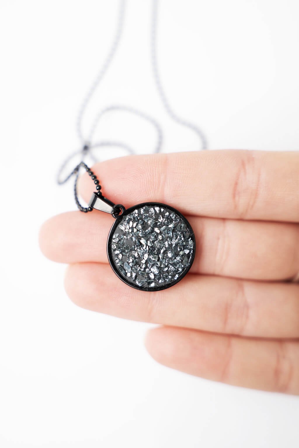 Tento ručne vyrábaný náhrdelník z dielne BATON BEADS je viac než len doplnok – je to malý umelecký objekt, ktorý môžete nosiť každý deň. Kombinácia šperkárskeho betónu, drveného skla a živice v oceľovom lôžku s priemerom 15 mm vytvára jemný, ale výrazný detail, ktorý zaujme na prvý pohľad.