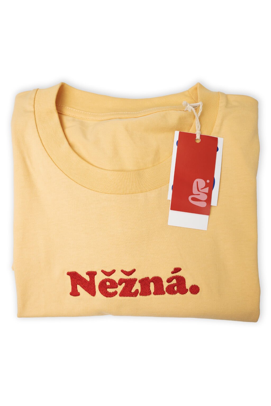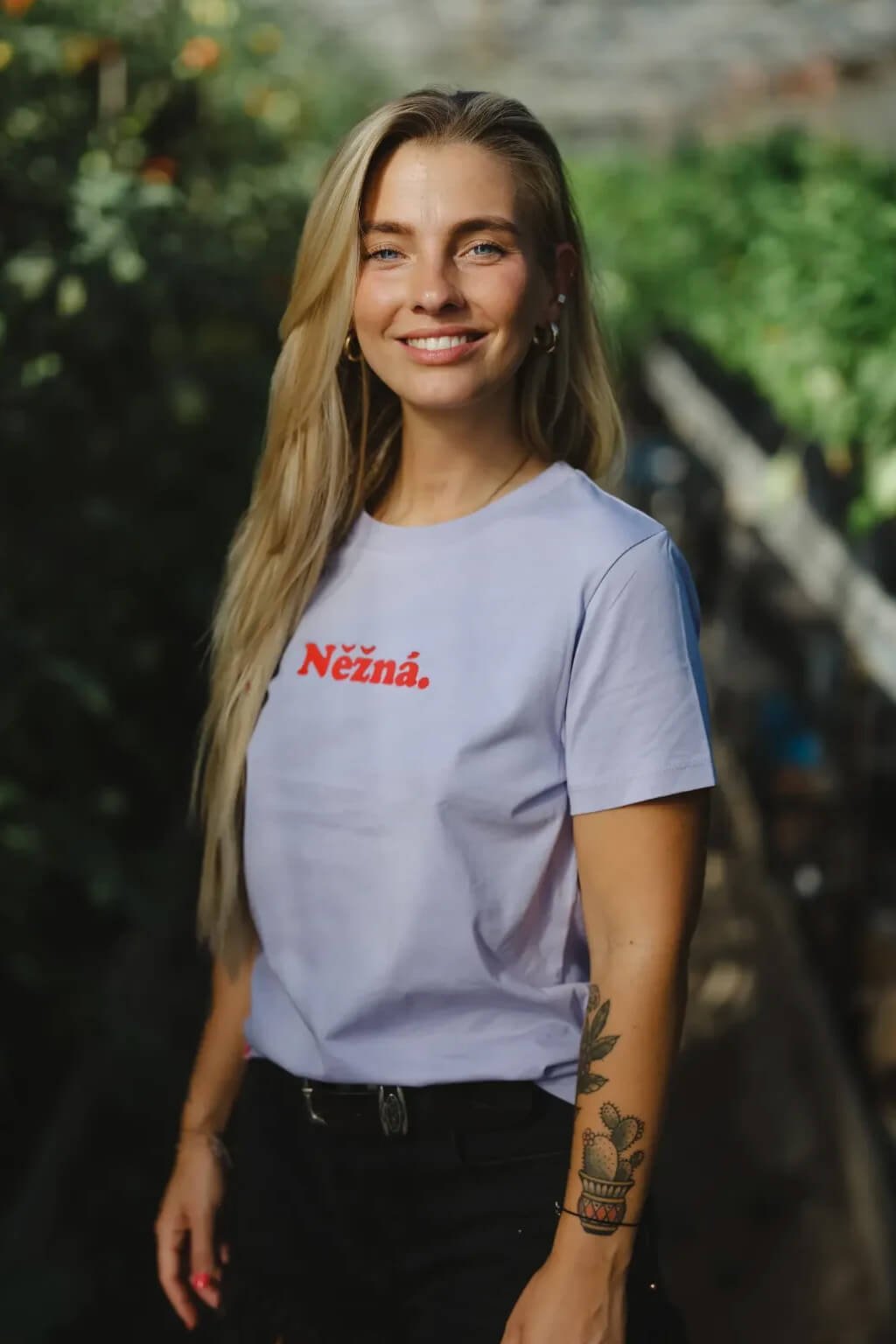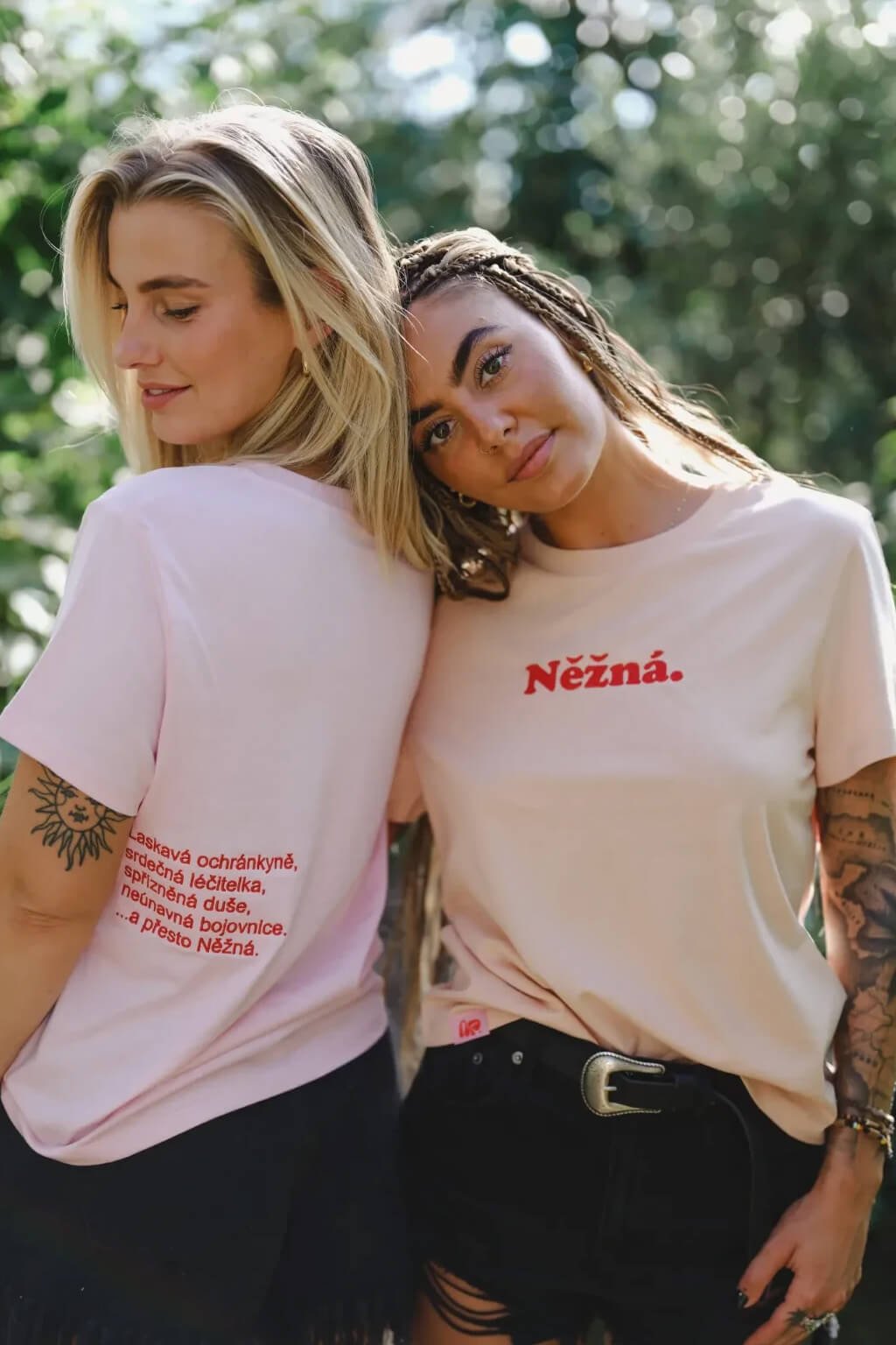 Pastelové tričko Něžná z ekologického textilu oslavuje nežnú silu modernej ženy – krásnej a nezávislej. S prednou výšivkou “Něžná” a jemným posolstvom na chrbte, všetko ručne vyšívané tu u nás na západe. Veľkosti nájdete v galérii fotiek.