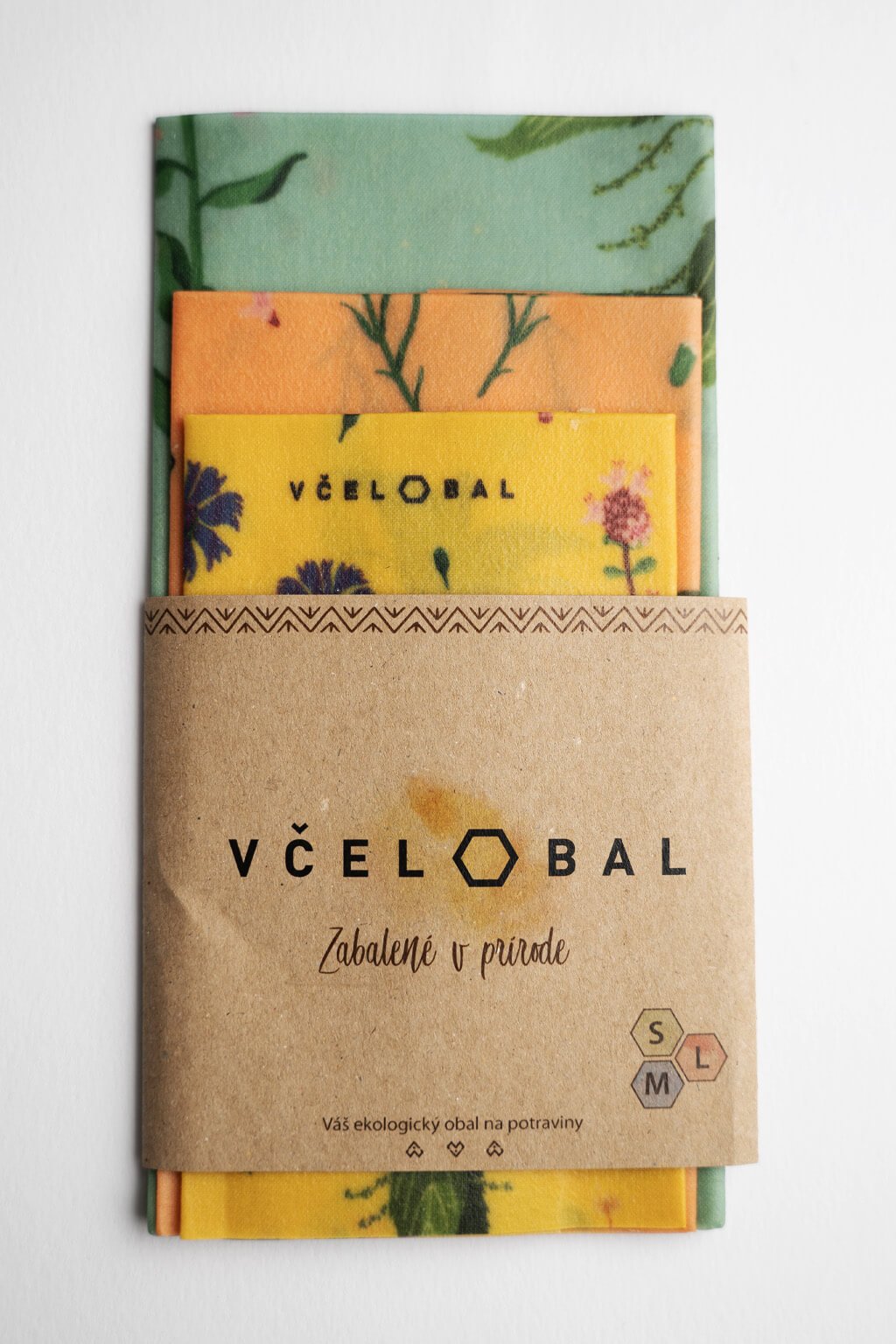 V balení nájdete jeden Včelobal veľkosti S (20x20 cm), M (25x27 cm), L (34x37 cm).