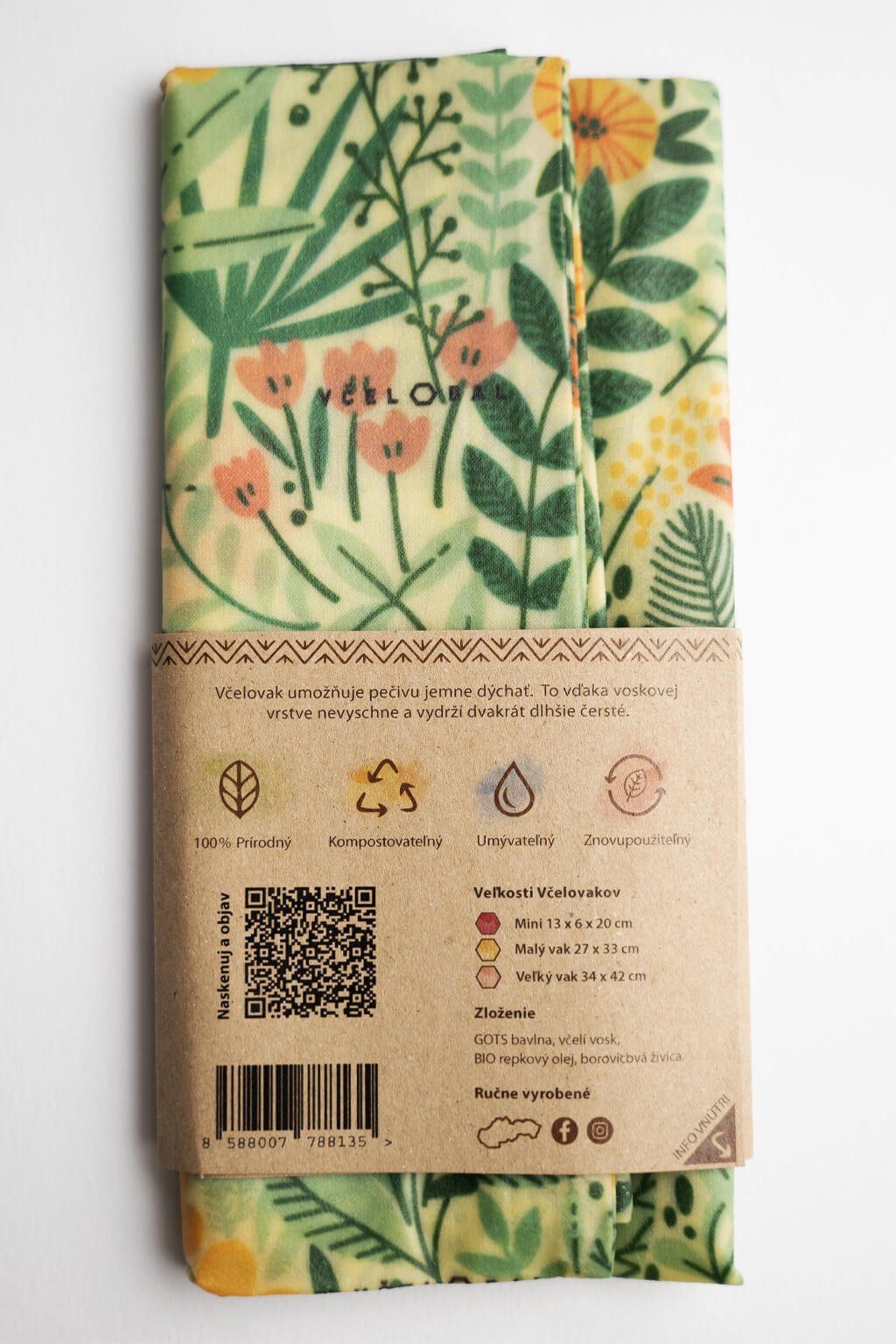 - Po použití ho stačí jemne utrieť alebo opláchnuť vo vlažnej vode. Potom ho necháte uschnúť a je pripravený na ďalšie použitie. Ak sa vám zdá, že obal stráca pružnosť alebo je príliš tuhý, stačí ho prehriať v rukách, niekoľkokrát ohnúť a narovnať. Tým sa vosková vrstva opäť zjemní a Včelobal bude opäť plne funkčný.