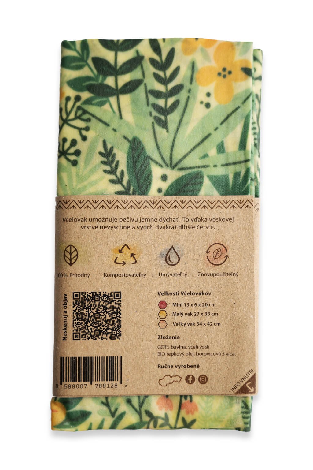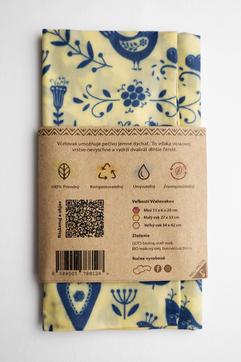 - Po použití ho stačí jemne utrieť alebo opláchnuť vo vlažnej vode. Potom ho necháte uschnúť a je pripravený na ďalšie použitie. Ak sa vám zdá, že obal stráca pružnosť alebo je príliš tuhý, stačí ho prehriať v rukách, niekoľkokrát ohnúť a narovnať. Tým sa vosková vrstva opäť zjemní a Včelobal bude opäť plne funkčný.