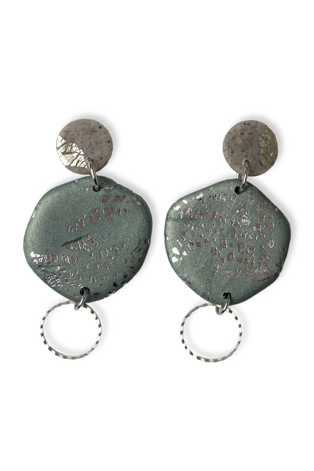 Čisté línie, abstraktné tvary a kvapka extravagancie, to sú hlavné atribúty týchto originálnych náušníc. Svojou decentnou výraznosťou a farebnosťou vnesú nezameniteľný štýl každému outfitu. Zaujmite svojou originalitou a doplňte svoj look týmto výnimočným kúskom vyrobeným z modrého a šedého polyméru s kvapkou striebra a z mosadze. Každý detail je premyslený a každý kúsok je ručne vyrobený s láskou.