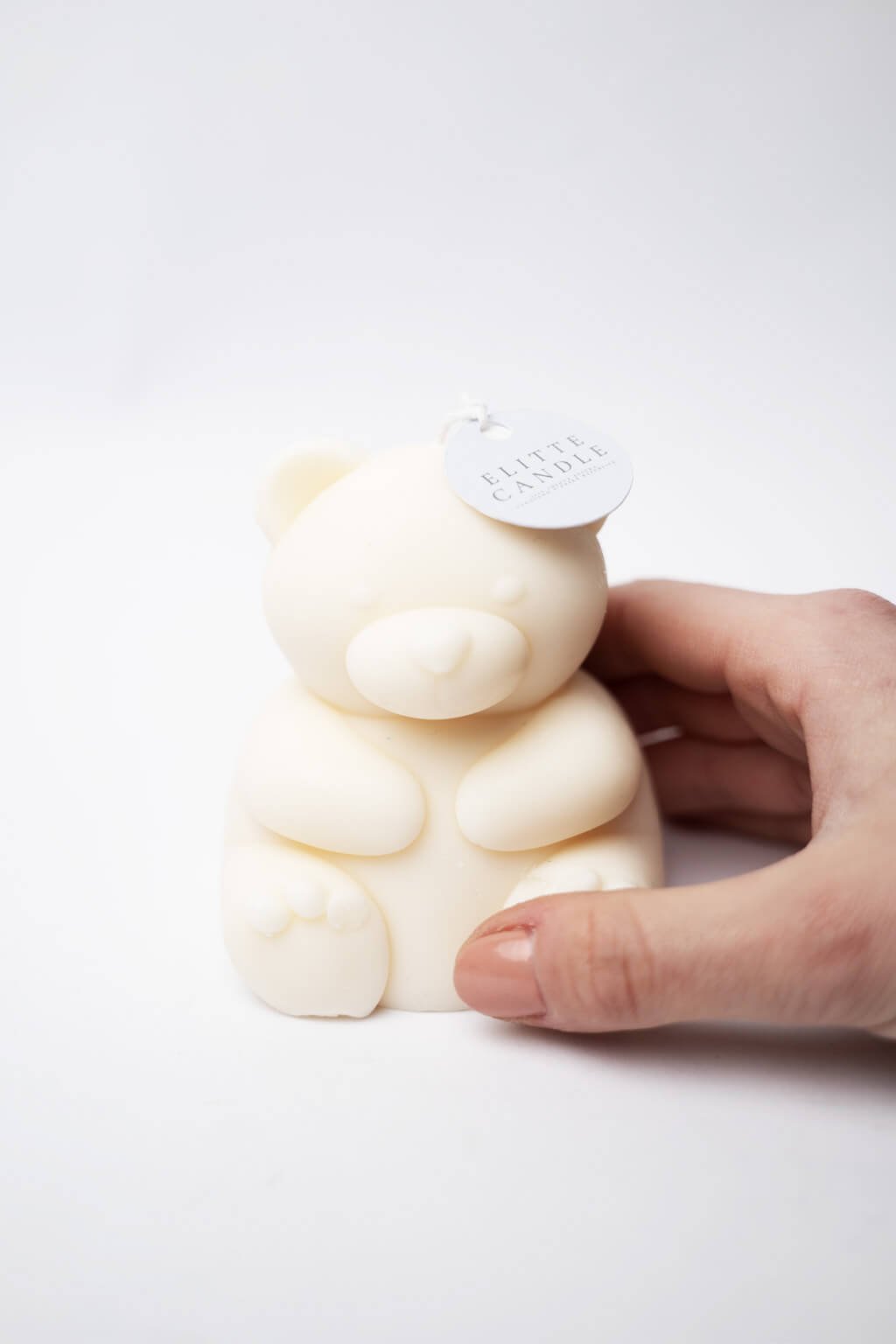 Exkluzívna sójová sviečka v tvare medvedíka so srdcom spája nehu s prírodnou krásou.