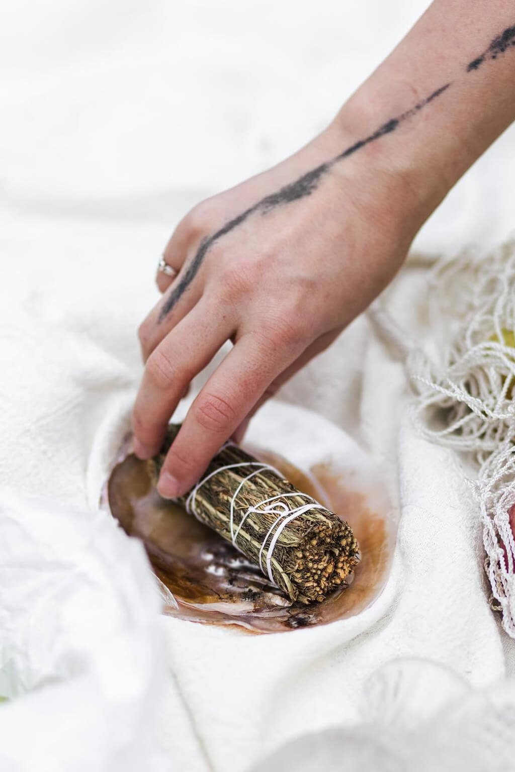 Zapáľte paličku Yerby a sfúknite plameň, aby začala tlieť. Počas rituálu ju nechajte tlieť v kadidelnici alebo mušli. Ak očisťujete byt, prejdite s ňou všetky miestnosti. Po dokončení rituálu zapichnite tlejúci zväzok do piesku alebo himalájskej soli.