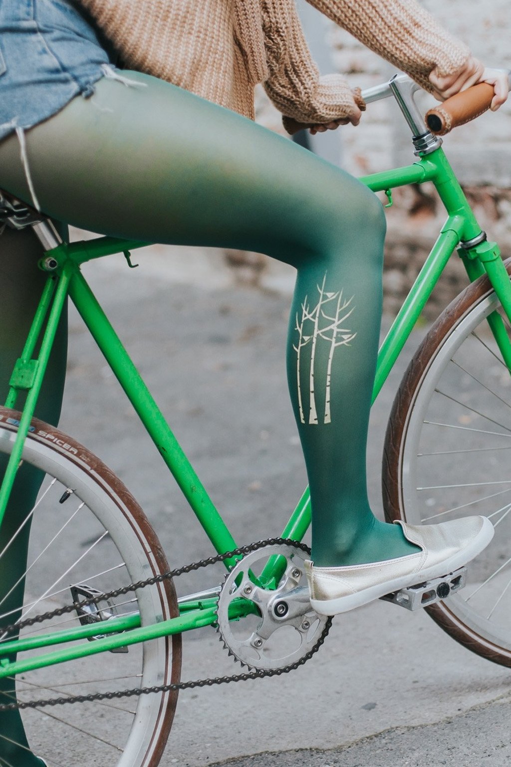 Zelené pančuchy s béžovými brezami