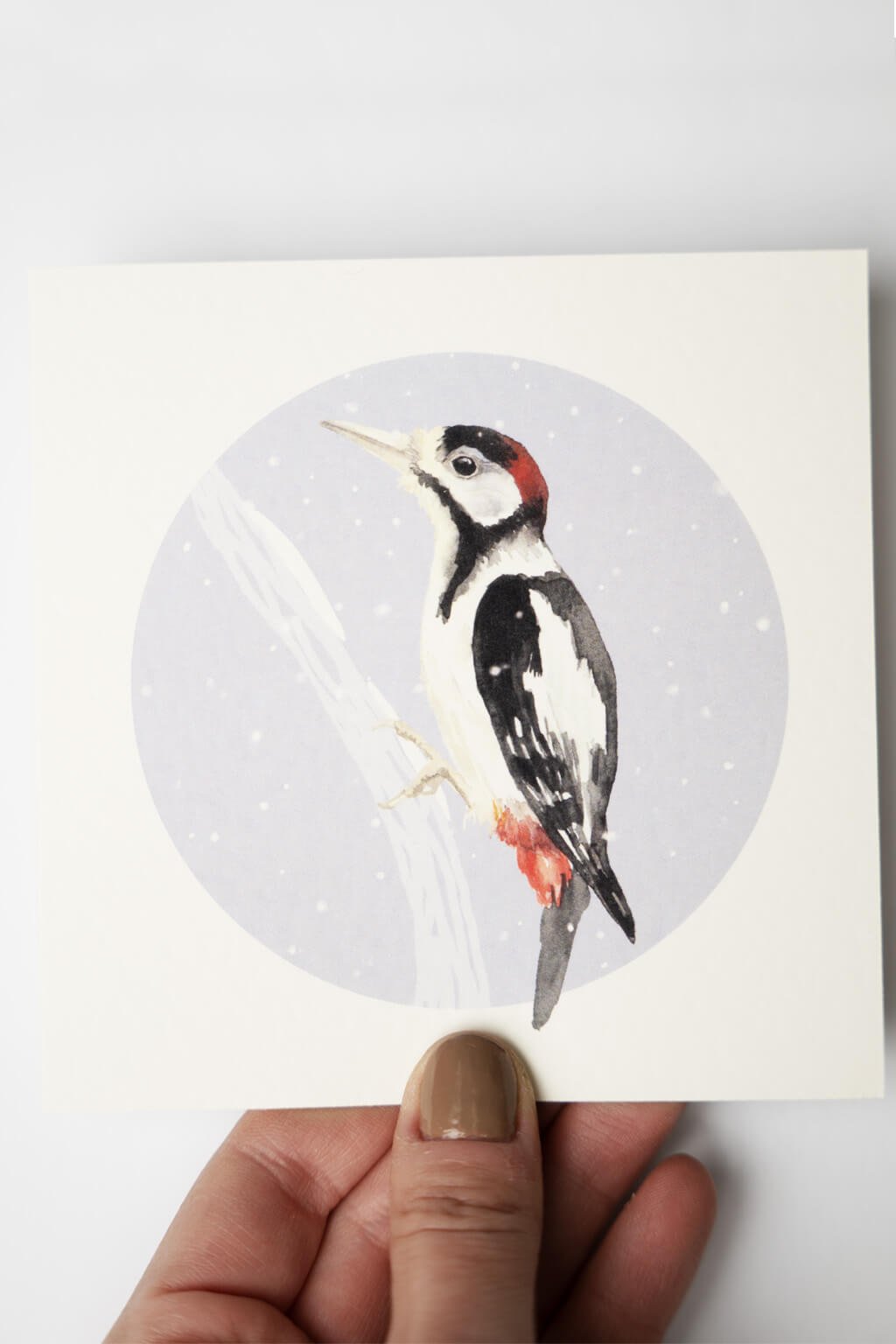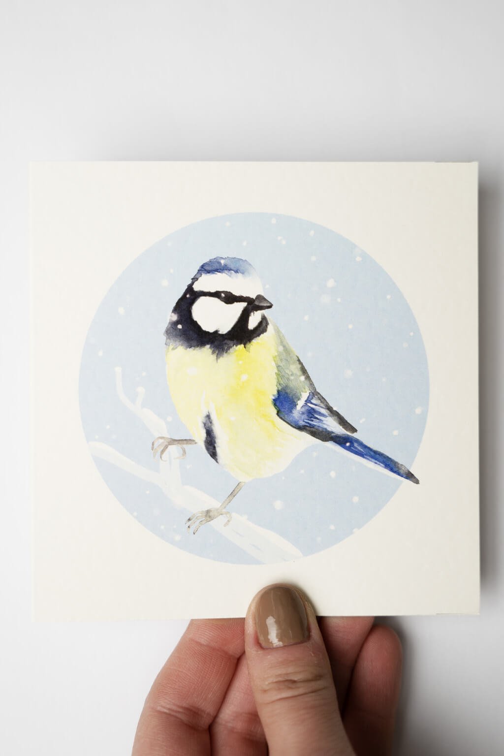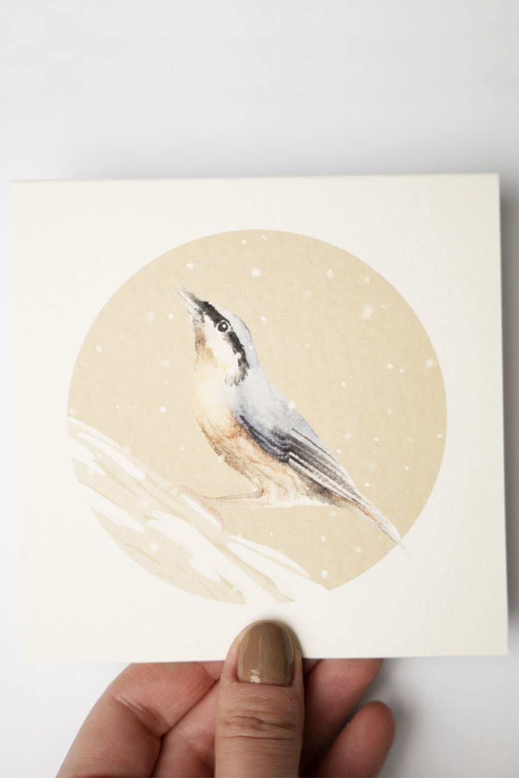 Autorské zimné blahoželanie s motívom vtáčika od ilustrátorky Soni Samlík.