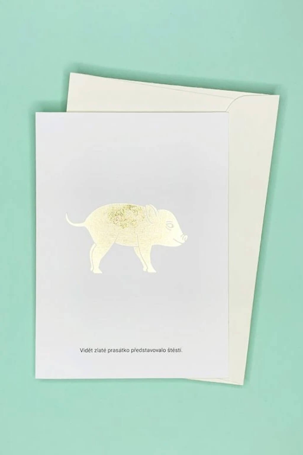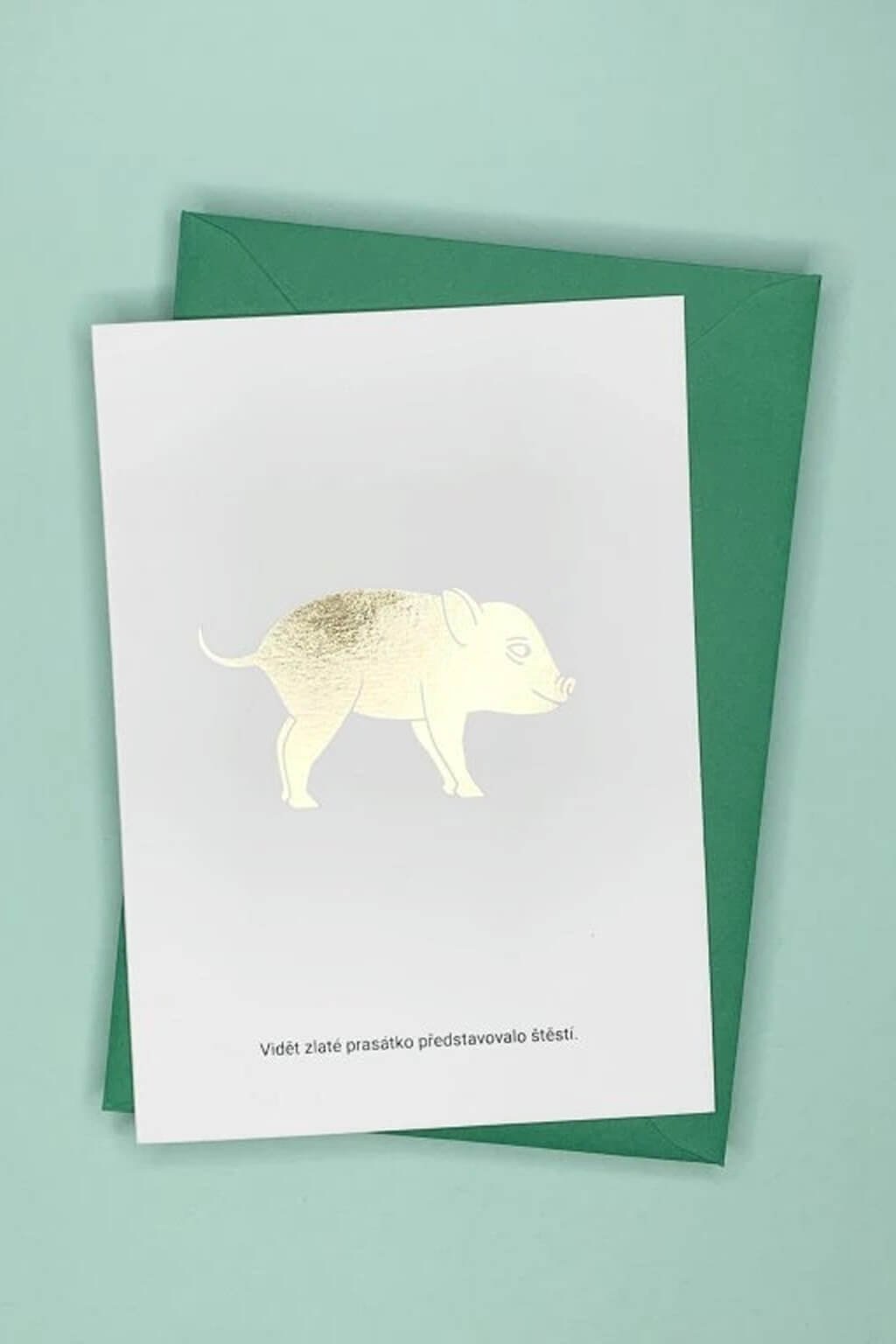 Autorské prianie so zlatou razbou prasiatka od ilustrátorky Táni Sekerkovej.