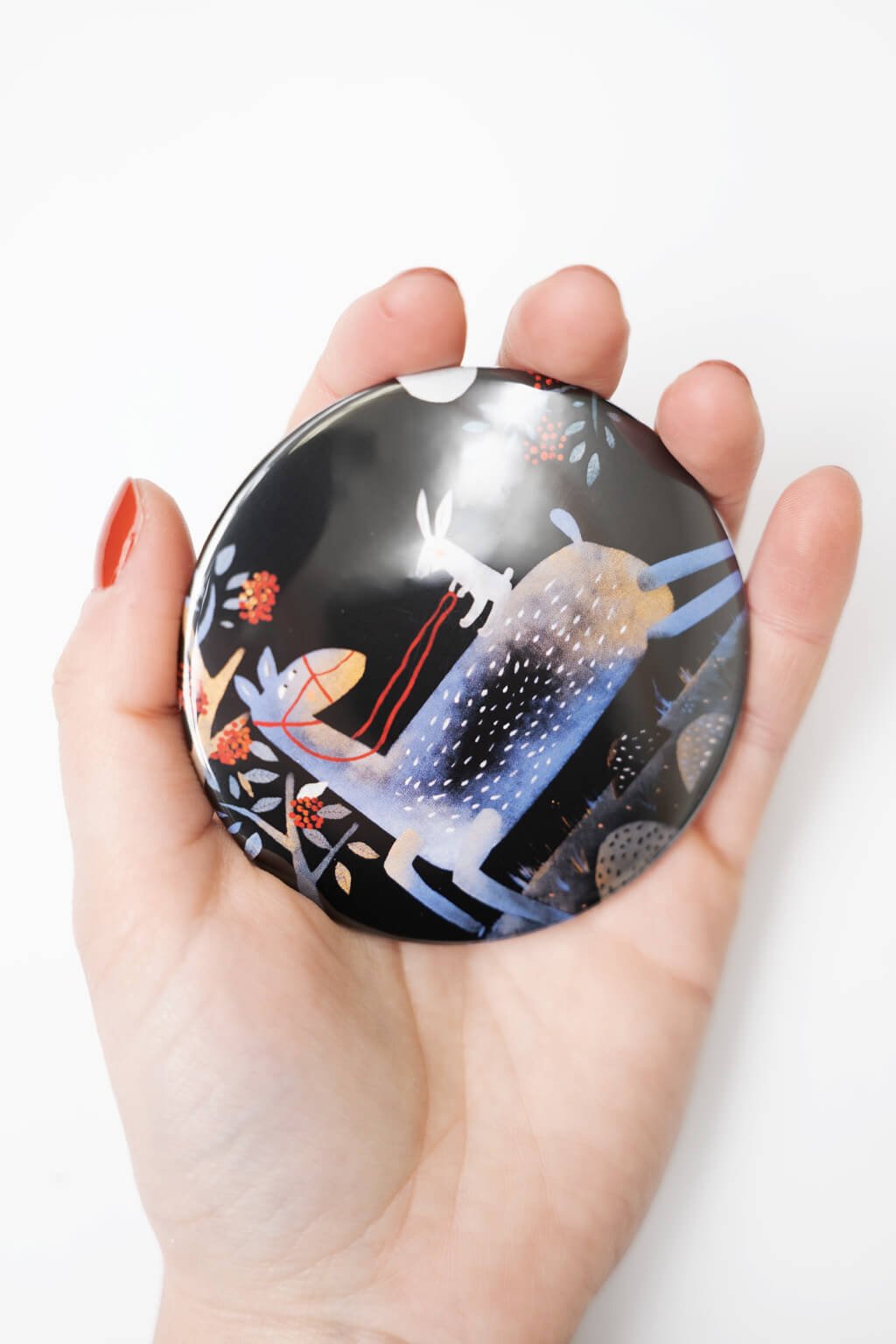Toto zrkadielko s motívom jarabín a zvieratiek vnesie do vášho dňa kúsok prírody a kúzla. S priemerom 75 mm je nielen praktické, ale aj štýlové – vždy po ruke pre malé opravy líčenia, alebo len tak pre pohľad na seba. Farebný a hravý dizajn oživí vašu kabelku a prinesie kúsok prírody kamkoľvek pôjdete. Skvelý tip na darček pre milovníkov zvierat, prírody a originálnych doplnkov. Prírodné motívy, ktoré zanechajú dojem!