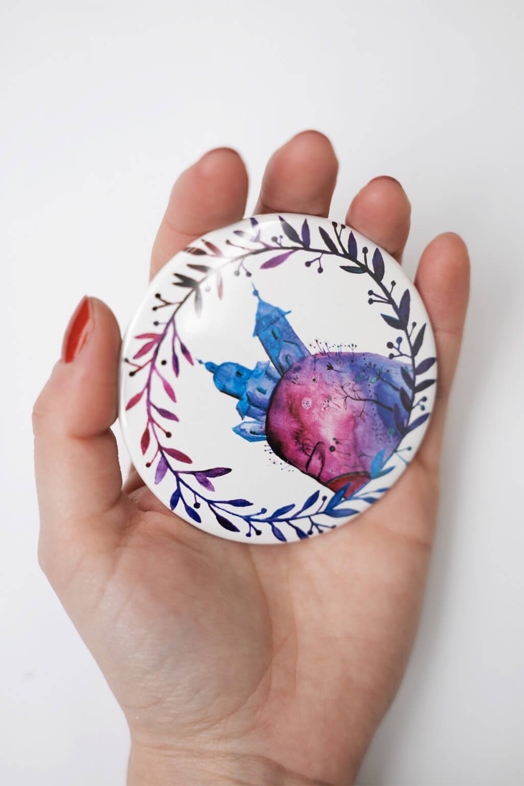 Toto zrkadielko s motívom Mikuleckého svätého kopčeka je krásnou pripomienkou jedného z najmalebnejších kútov našej krajiny. S priemerom 75 mm je ideálne na každodenné používanie a skvele sa zmestí do každej kabelky. Perfektný darček pre tých, ktorí milujú Mikulov a jeho krásy!