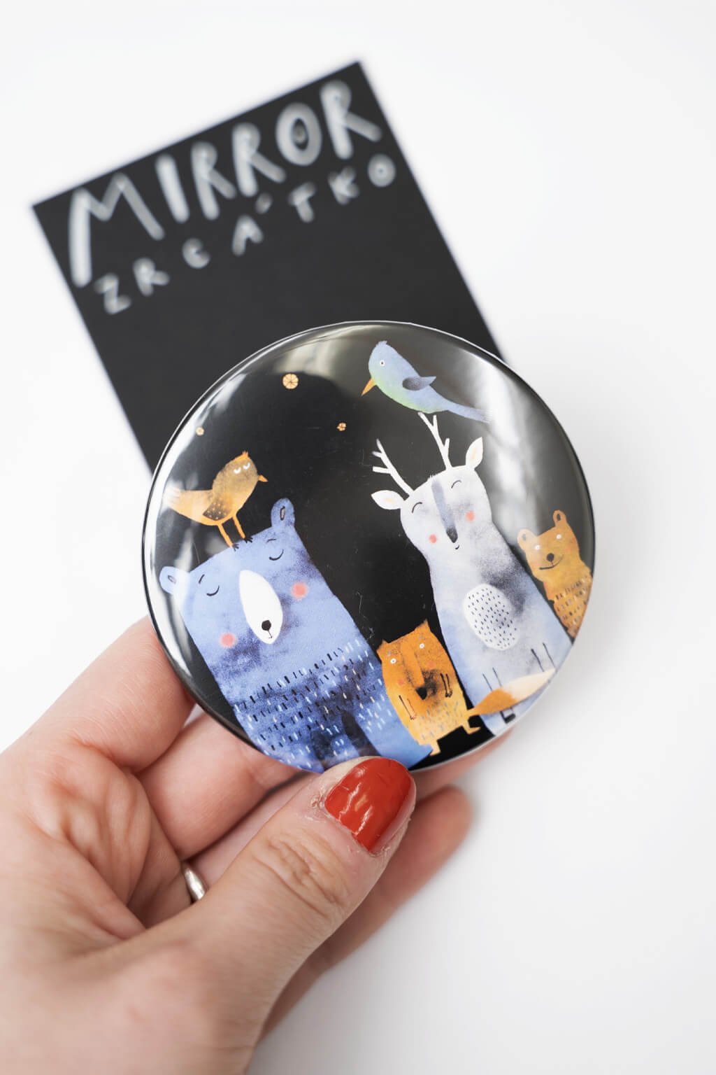 Toto zrkadielko s motívom zvieracieho nočného snemovania prináša do každého dňa kúsok tajomnej prírody. S priemerom 75 mm je ideálne do kabelky, takže ho máte vždy po ruke, kedykoľvek budete potrebovať rýchlu úpravu. Skvelý darček pre všetkých milovníkov prírody a kúzelných nočných chvíľ.