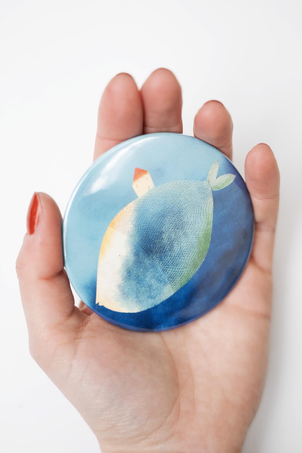 Toto zrkadielko s motívom ryby s domčekom na chrbte je originálny a hravý spôsob, ako mať kúsok prírody stále pri sebe. S priemerom 75 mm sa ľahko zmestí do kabelky a je ideálne na rýchle úpravy. Skvelý darček pre milovníkov zvierat, vody a netradičných dizajnov!