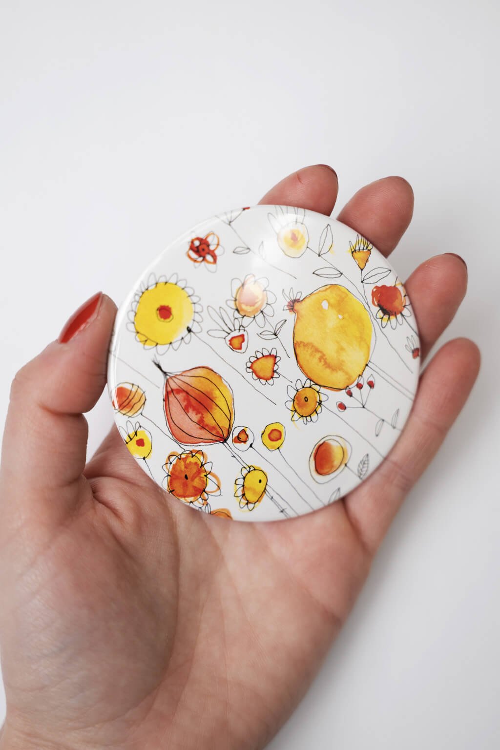 Žlté kvietky sú symbolom optimizmu a sviežosti – a teraz ich môžete mať stále pri sebe! Toto zrkadielko s jemným kvetinovým motívom vám prinesie úsmev každý deň.